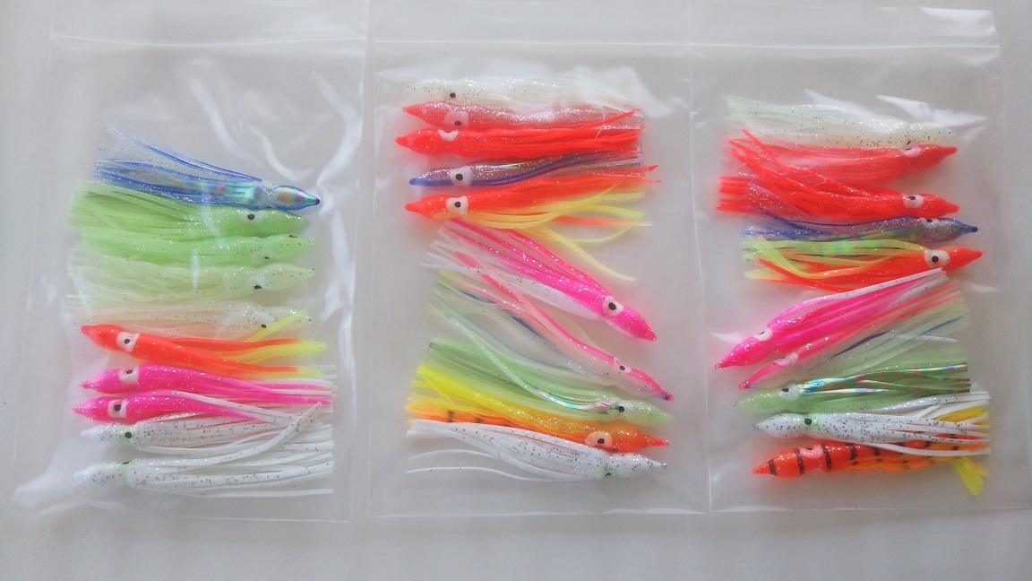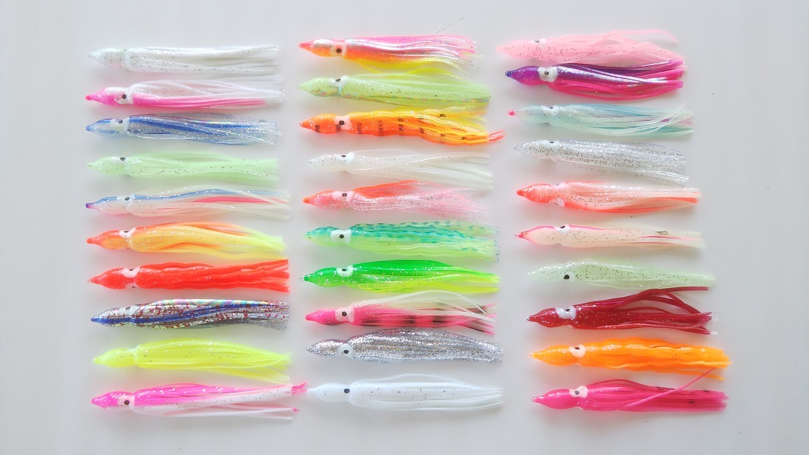 タコベイト 10cm 3g 30個 セット ランダムカラー イカ スカート インチクに ソフトルアー ワーム 疑似餌 鮭 サーモン 根魚