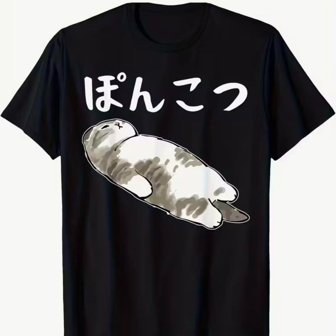 - デザイン: ぽんこつのイラストがプリントされた黒いTシャツ