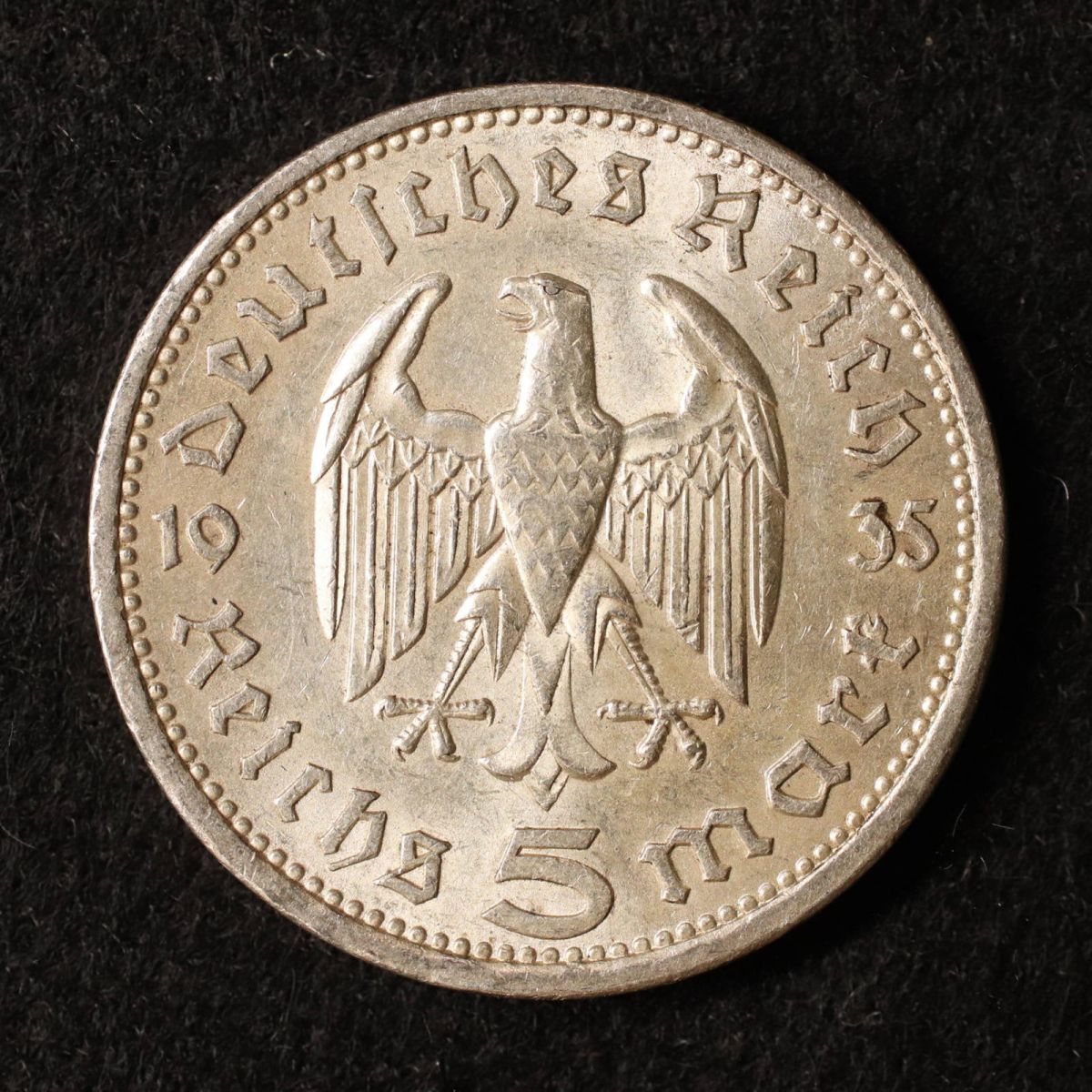 *[令]KM#86/ドイツ第三帝国 5ライヒスマルク銀貨(1935)ベルリン・ミント[E2162]7b5