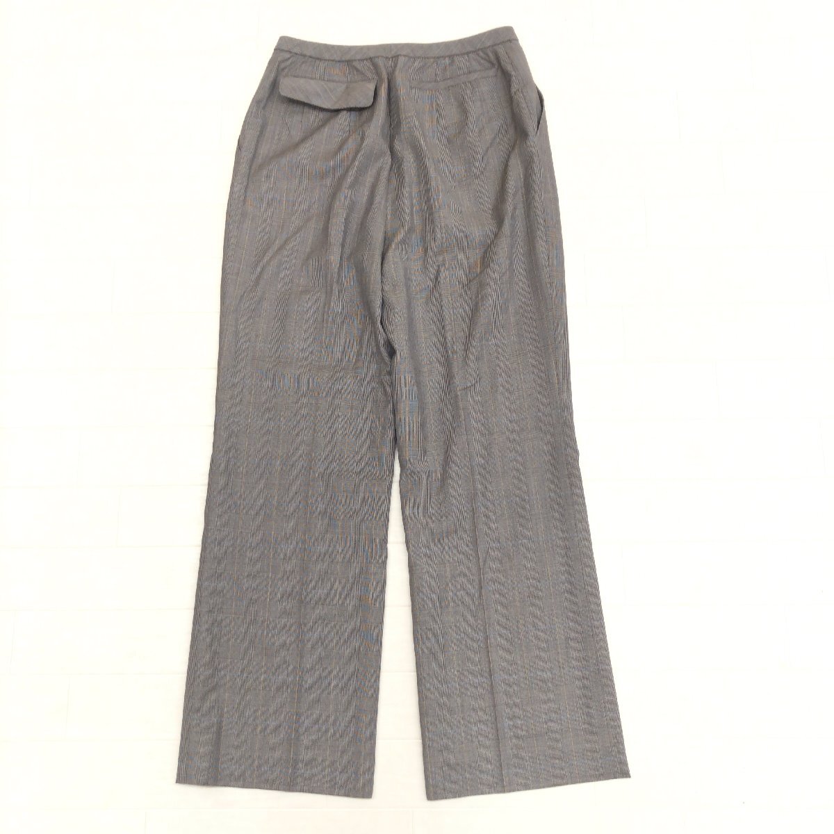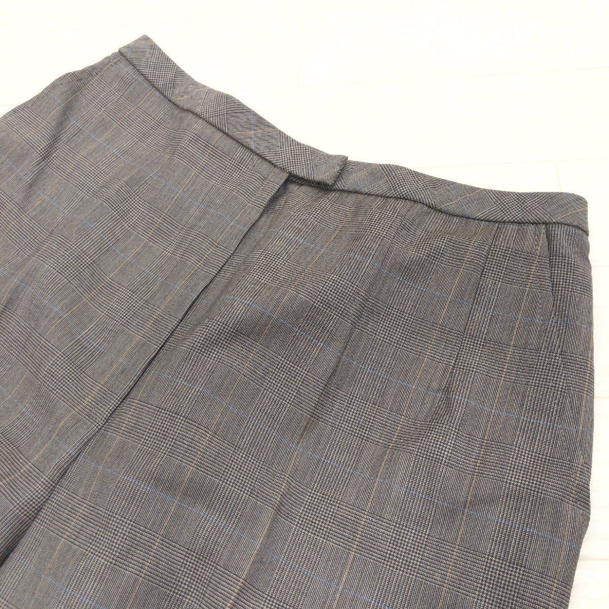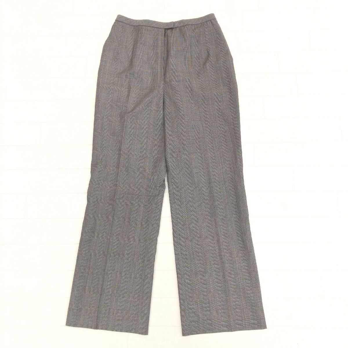 美品 Leilian レリアン 伊FINTES社製生地 グレンチェック ウール スラックス パンツ 7(S) w64 ブラウン系 日本製 センタープレス 婦人