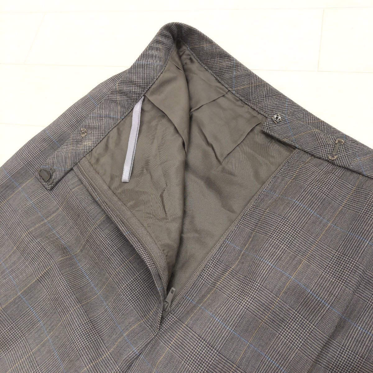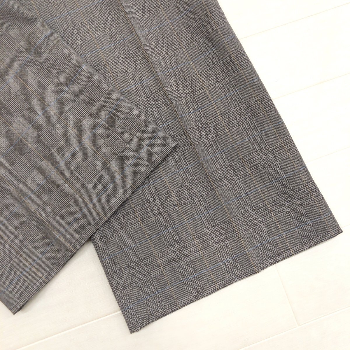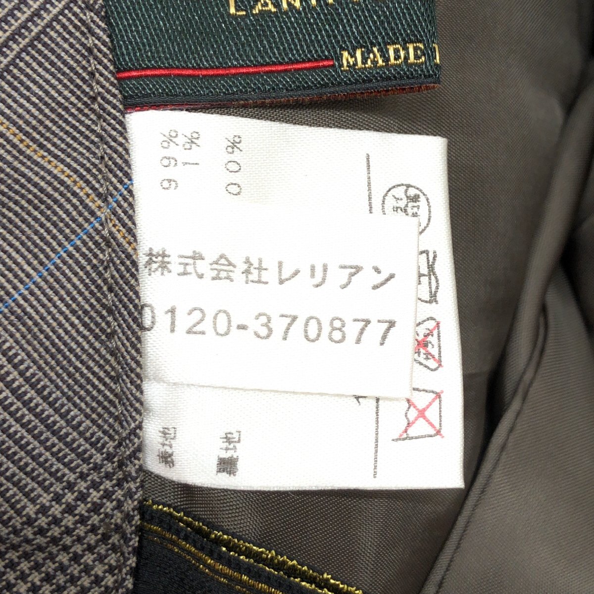 美品 Leilian レリアン 伊FINTES社製生地 グレンチェック ウール スラックス パンツ 7(S) w64 ブラウン系 日本製 センタープレス 婦人