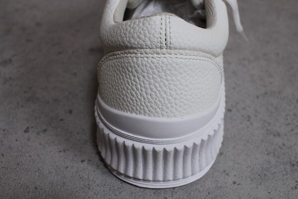 包み込むようなモールドソールが特徴のスニーカーです。 近年トレンドであるボリュームを持つ厚底ソールを シンプルなデザインで軽い仕上がりにしました。 足あたりがソフトな低反発素材と、メッシュの基布で 蒸れを軽減した快適なインソール仕様です。 適度なボリューム感はストレートパンツからワイドパンツまで 様々なパンツに合わせやすいです。