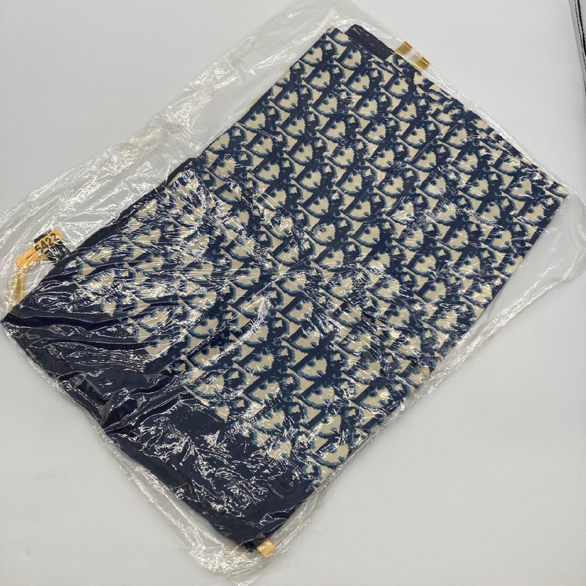 ◆ Christian Dior クリスチャンディオール スカーフ ネイビー×ホワイト シルク100% トロッターDiorロゴ 【中古品】MB ai KBA3