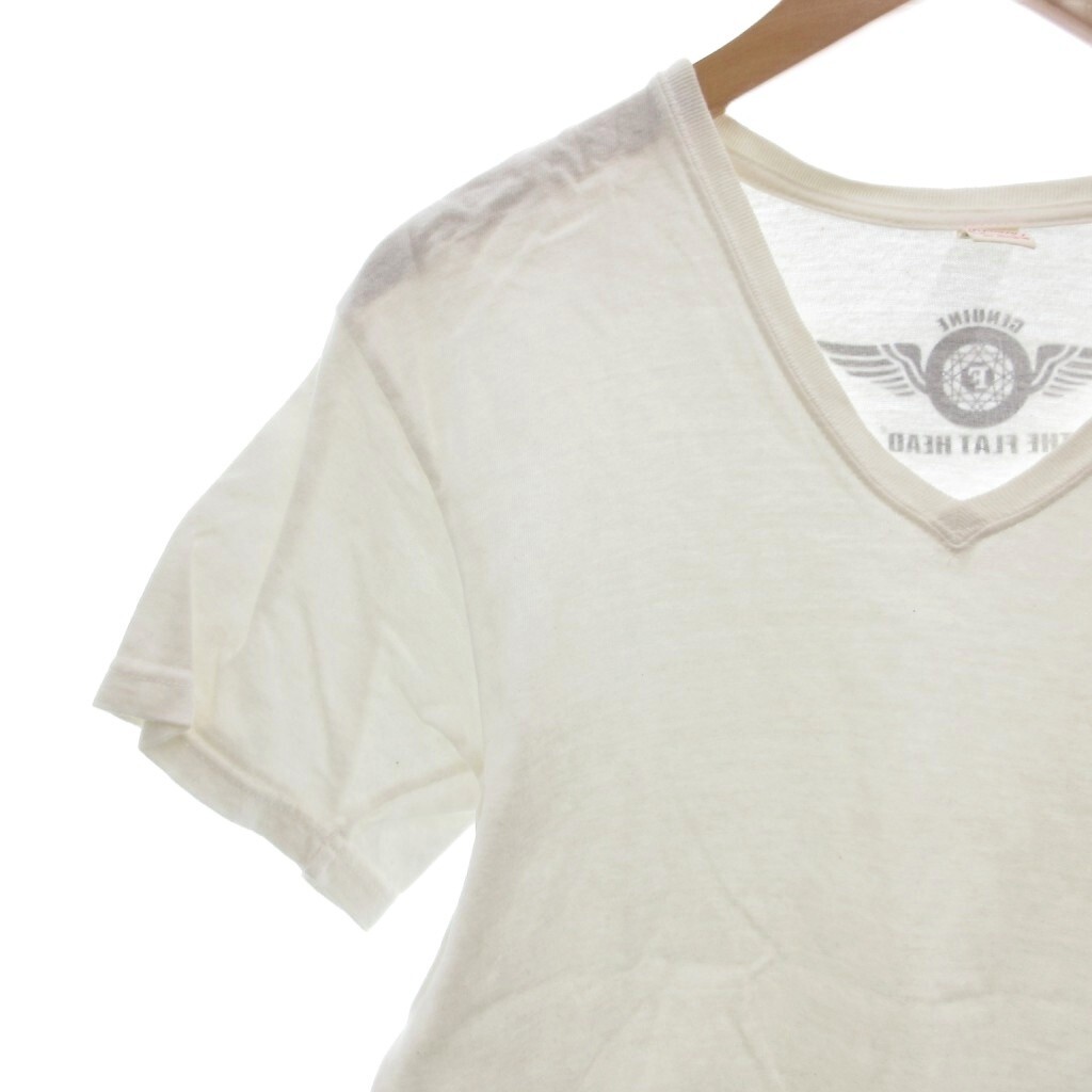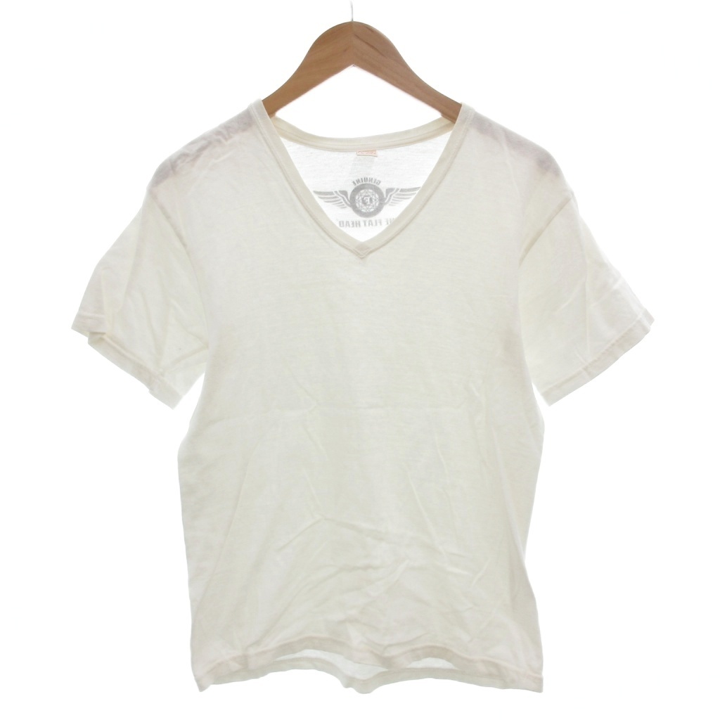 ザ フラットヘッド THE FLAT HEAD Tシャツ 半袖 Vネック プリント 40 白 ホワイト /JS ■ECT メンズ