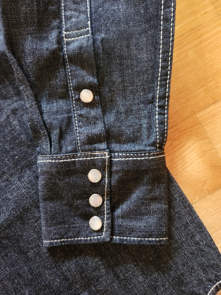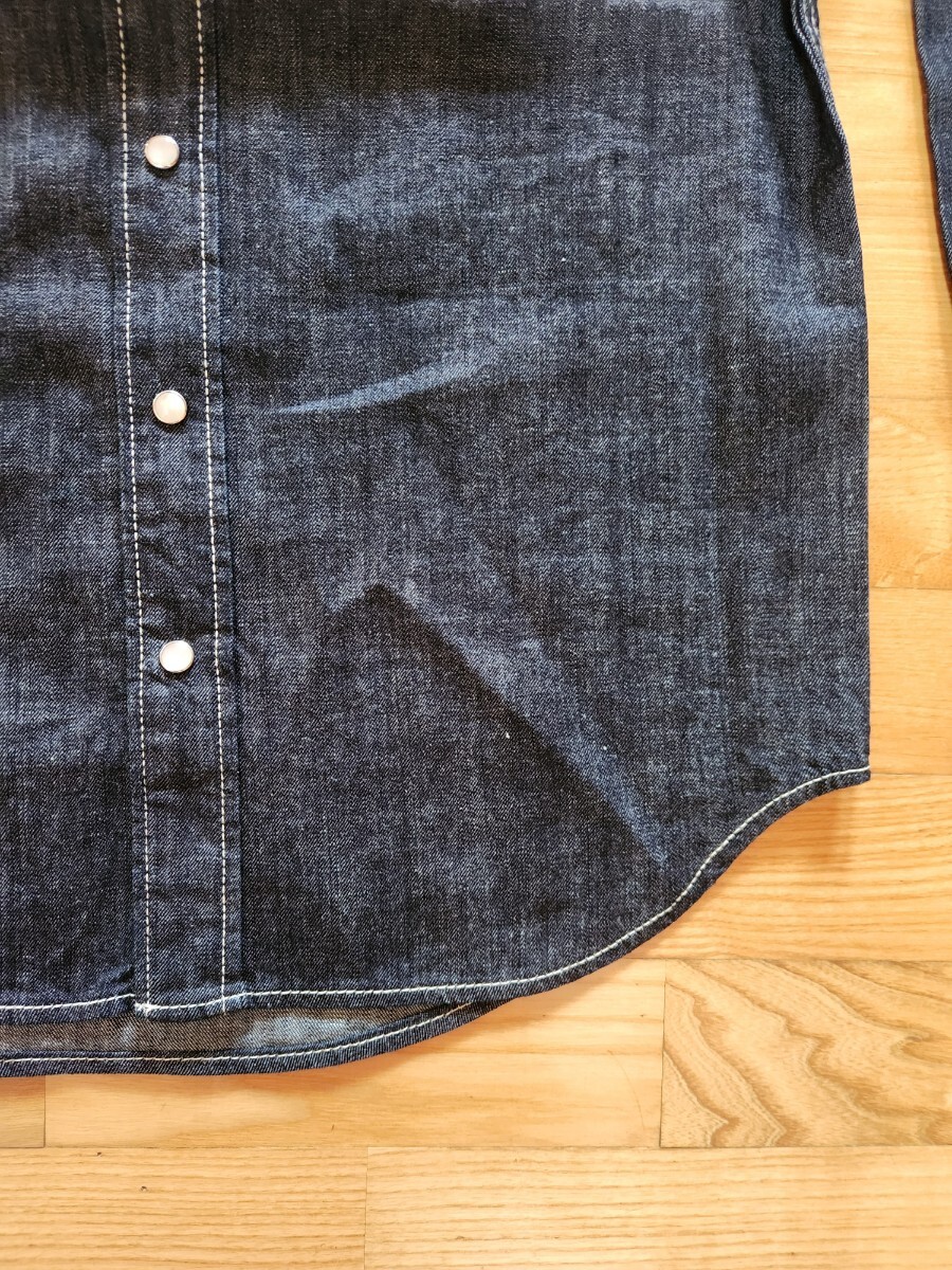 ◎特徴 アメリカンコットンを使用したデニムシャツ。 パール調のスナップボタンを使用し、胸ポケットフラップ部分のボタンや袖口にも同様のスナップボタンを使用。特徴的なヨークの切り替えはデザイン性が高く、ウエスタンヨークと呼ばれています。