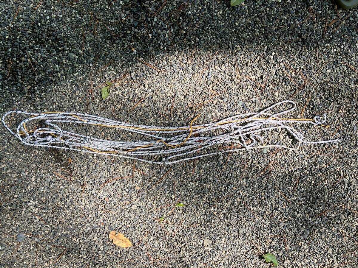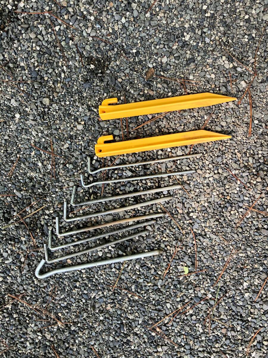 ・ペグやロープは欠品あるかもしれませんが、設営には支障がない数は揃っています。