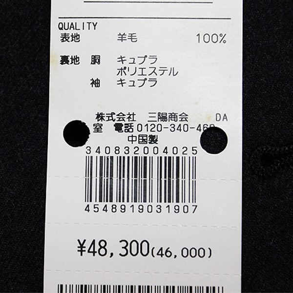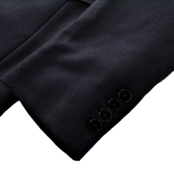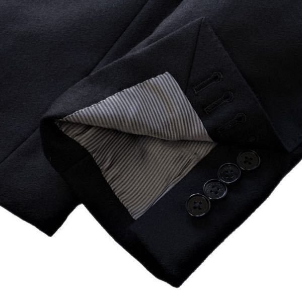 ジャケットは、ノッチドラペル、サイドーベント、4ボタン、お袖は切羽仕立て2ボタン。