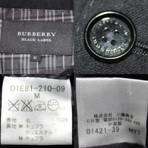 新品!定価4.8万 M(2)羊毛100%×ノバチェック★バーバリーブラックレーベル ウール サファリ テーラードジャケット黒BURBERRY BLACK LABEL
