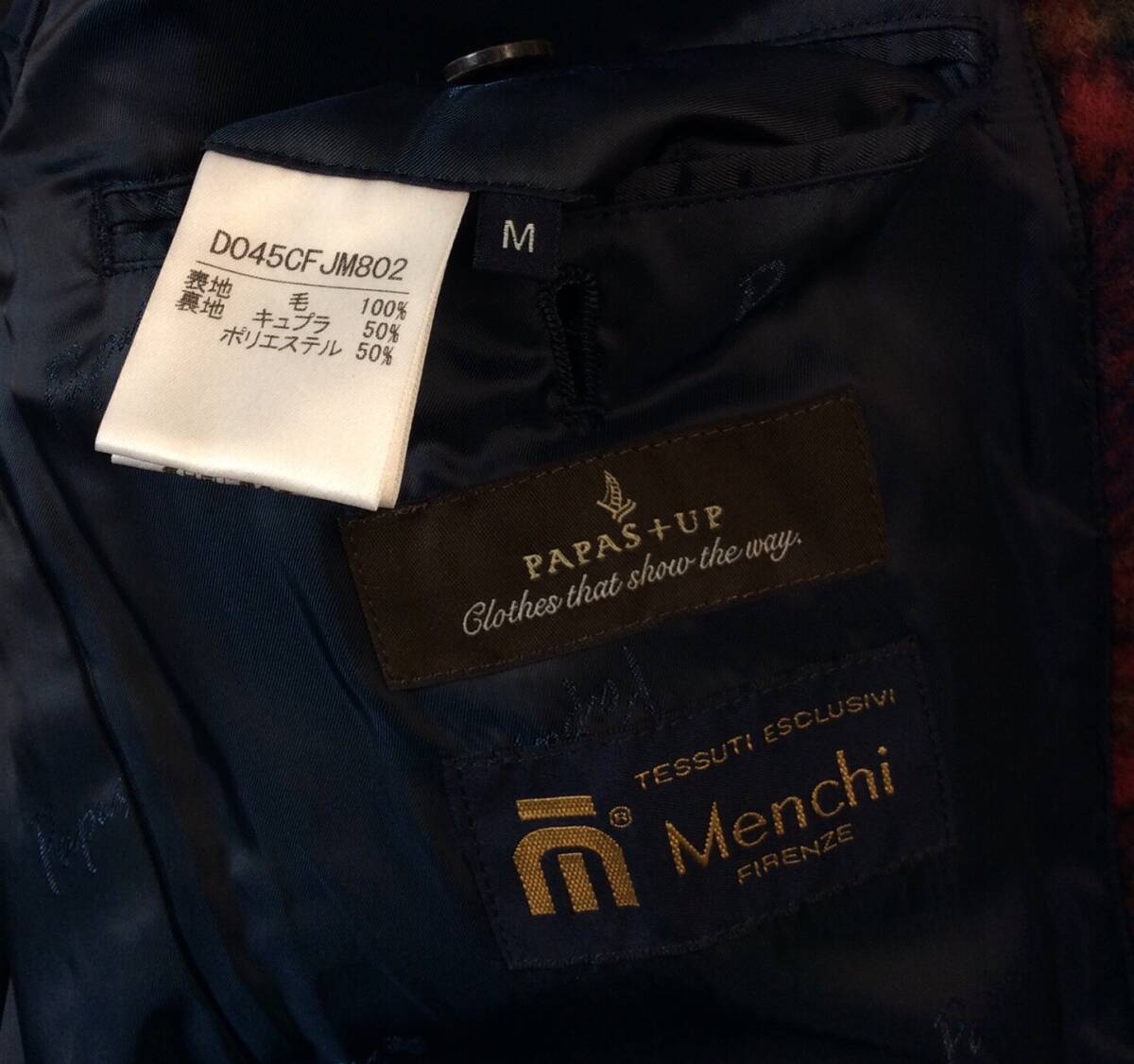 PAPAS パパス +UP Menchi ウール ジャケット コート オーバーコート チェック メンズ M