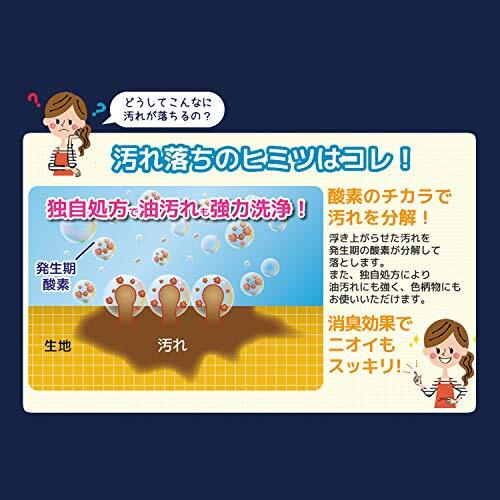 説明商品紹介●酸素パワーでガンコな汚れもスッキリ。●漂白。消臭。除菌。●キッチン周りや浴室のお掃除にも使える酸素系漂白剤です。●食べこぼし・血液・汗ジミ・黄ばみなど、有機性汚れのお洗濯に。●色柄物も安心。【品名】衣類・布製品・台所まわり・水まわり・食器・浴槽・家具用漂白剤【液性】弱アルカリ性【用途】衣類等についたガンコな汚れやシミを落とす【使用量の目安】水4Lに対し30g【使用方法】※使用上の注意をよく読んでご使用ください。・お湯(40〜60度)でご使用いただくと効果的です。・水でご使用の場合は、少量のお湯で溶かしてから、水と混ぜてご使用ください。★使えるもの洗濯物(衣類)、カーテン、ナイロンのカーペット(ウール、ウール混紡製には使用不可)食べこぼし、食器の茶渋、タバコのヤニ、血液、醤油、浴室の目地、玄関のタイル、植物による汚れ、ペットによる汚れ、ニオイ等★使えないものウール製品、ウール混紡、ウール製カーペット、ペルシャ製カーペット、畳、シルク、革製品などの水洗い出来ない素材や、宝石、金属製のアクセサリー類、金属のサビ取りには使用出来ません。使用上の注意・用途以外に使用しないでください。・熱湯は使用しないでください。・必ず使用前に目立たない場所で試し、乾燥させた後に、色落ちがないかをご確認の上、ご使用ください。・本剤と水を混ぜる際は、容器に顔を近づけ過ぎないでください。・溶液を作り置きし、密封した容器に長時間放置しないでください。酸素を出し続け破裂することがあります。・溶液は有効性がなくなりますので、6時間以内に使いきってください。・お子様やペットが触れる場所に置かないでください。・認知症の方などの誤飲を防ぐため、置き場所に注意してください。・直射日光を避け、高温の所に置かないでください。・商品の容器に水や他の物を入れないでください。・洗濯洗剤以外(アンモニアを含む製品、還元系漂白剤、家庭用洗剤)とは混ぜないでください。・目に入った場合はこすらずに流水で十分洗い流し眼科医に相談してください。・皮膚についた場合は水でよく洗い流し、異常があれば医師に相談してください。※いずれの場合も受診時は商品を持参してください。原材料・成分過炭酸塩(酸素系)、炭酸塩、水軟化剤、過硫酸塩、界面活性剤(アルファオレフィンスルホン酸ナトリウム) ■ご注文からお届けまで ※トラブル防止のため入札、落札前に必ずご一読をお願い致します。 落札後のお客様都合でのキャンセルはお受けできませんので、予めご了承ください。 1.ご注文 : ご注文は24時間受け付けております。 2.注文確認 : ご注文時、オーダーフォーム等必要事項を入力お願い致します。 3.入金確認 : 前払い決済をご選択の場合、ご入金確認後、配送手配を致します。 4.出荷 : 配送準備が整い次第、出荷致します。配送業者、追跡番号等の詳細をご連絡致します。 5.到着 : 出荷後、1-3日で商品が到着します。 ※商品の到着までは、決済確認後、3-7営業日でお届けとなります。 ※離島、北海道、九州、沖縄は遅れる場合がございます。ご了承下さい。 ※代引の場合、手数料として660円頂きます。 商品管理、在庫管理は行っておりますが、商品の不具合等でお届け出来ない場合は、 銀行口座へ振込返金となりますので、予めご了承いただきますようお願い申し上げます。 手続き削減の為、こちらからは発送完了までご連絡を行なっておりません。 原則、電話対応はしておりませんので、ご質問等はお問い合わせ、またはメールにてお願い致します。 土日祝祭日はご質問や落札されても商品発送等の、対応ができない日もございます。 予めご了承ください。 | ||