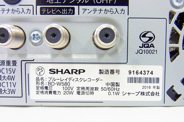 U031-Y41-357 SHARP シャープ BD-W580 ブルーレイレコーダー 通電確認済み 現状品③@