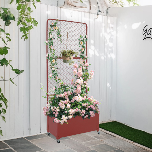 フェンス プランター付き 目隠し キャスター付き 簡単設置 電着塗装 L70×W30×H160cm 園芸用品 プランター ガーデンラテ庭園【レッド 】