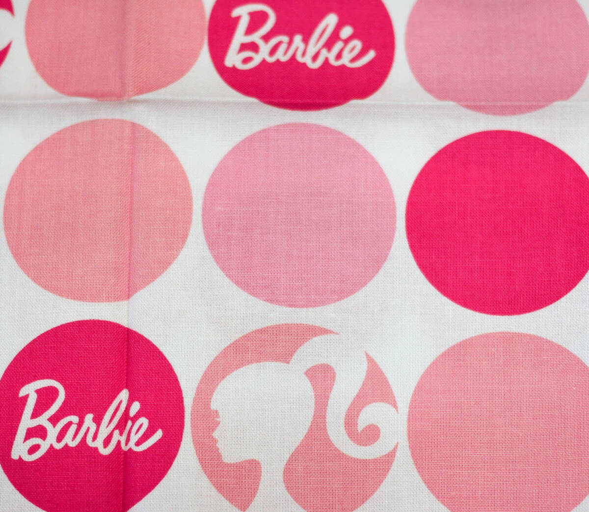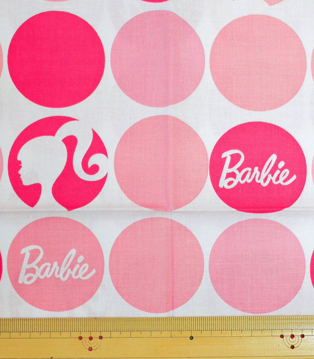 アメリカ はぎれ バービー サークル 45×53 USAコットン ピンク ホワイトn プリント生地