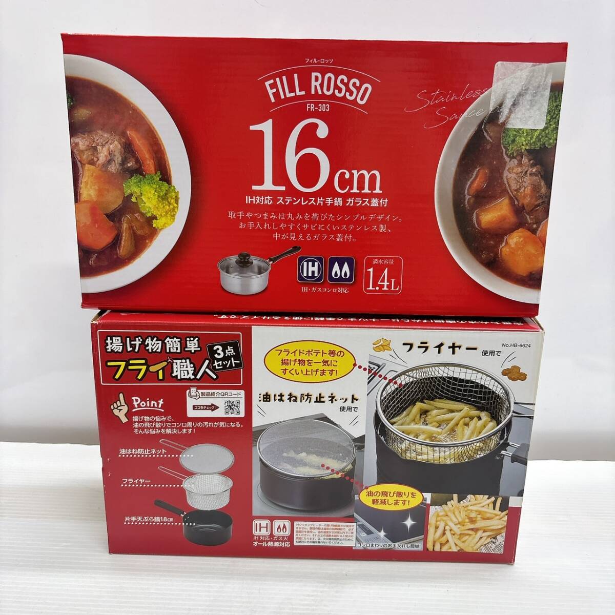 [商品名] | 送料無料h8812 パール金属 揚げ物簡単フライ職人3点セット HB-6624 IH対応 カクセー FILL ROSSO IH対応ステンレス片手鍋 ガラス蓋付 16cm 2個セット 未使用 | |||||||||