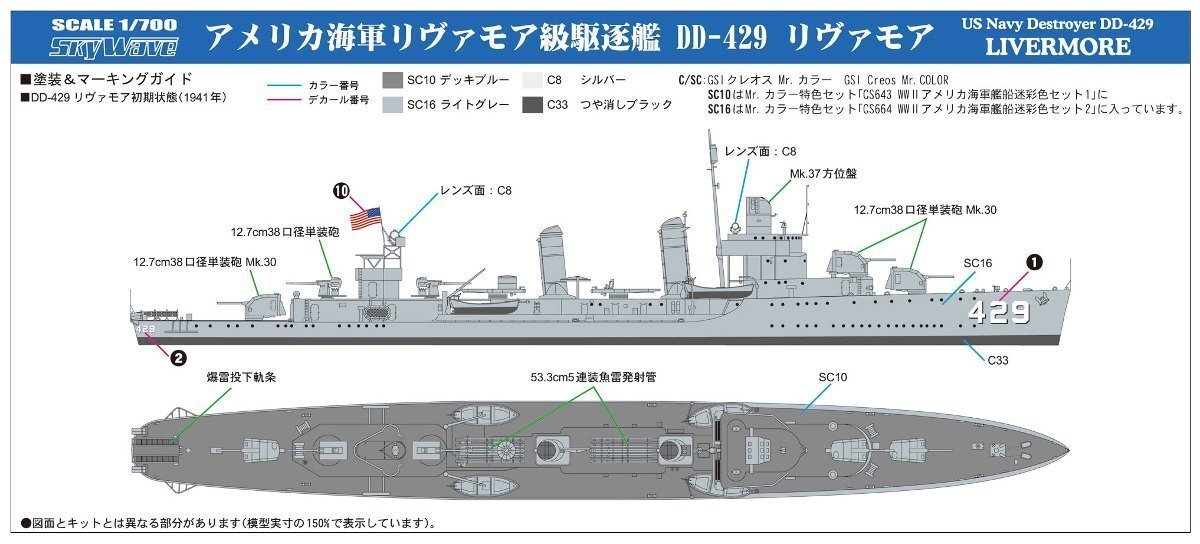 ピットロード W211 1/700 スカイウェーブシリーズ アメリカ海軍 駆逐艦 DE-429 リヴァモア 定価¥1800(税別)