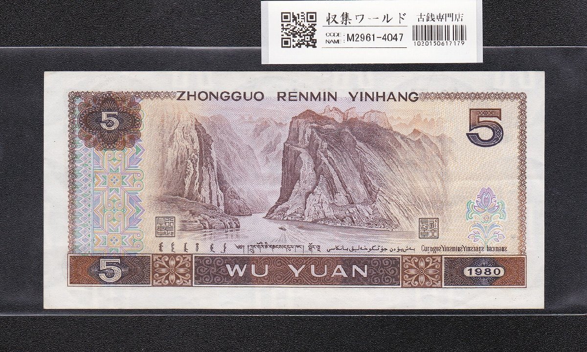 中国紙幣 5元 1980年銘 第4シリーズ 少数民族像 WJ69174449 完未品 収集ワールド