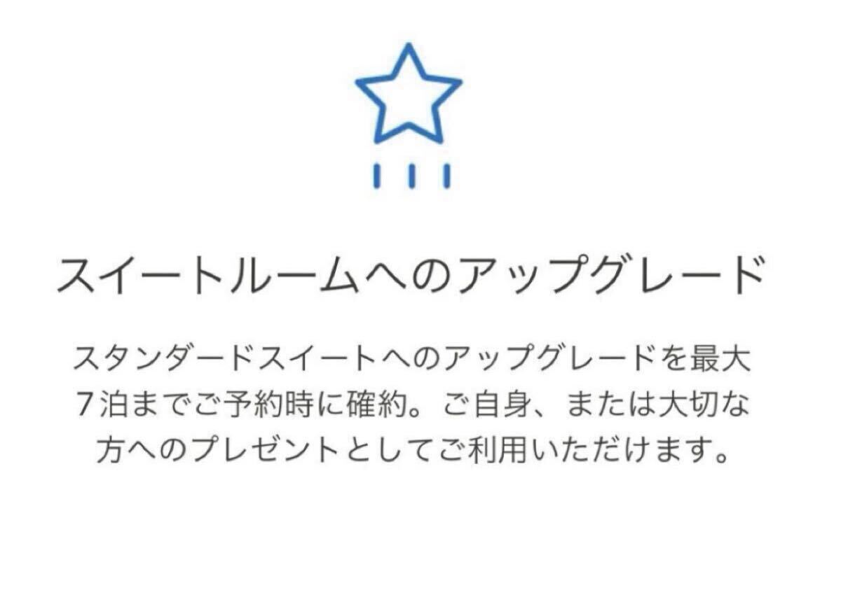 本特典は、ハイアットホテルのご予約時に、スタンダードスイートルームへのアップグレードを確約できる特典です。