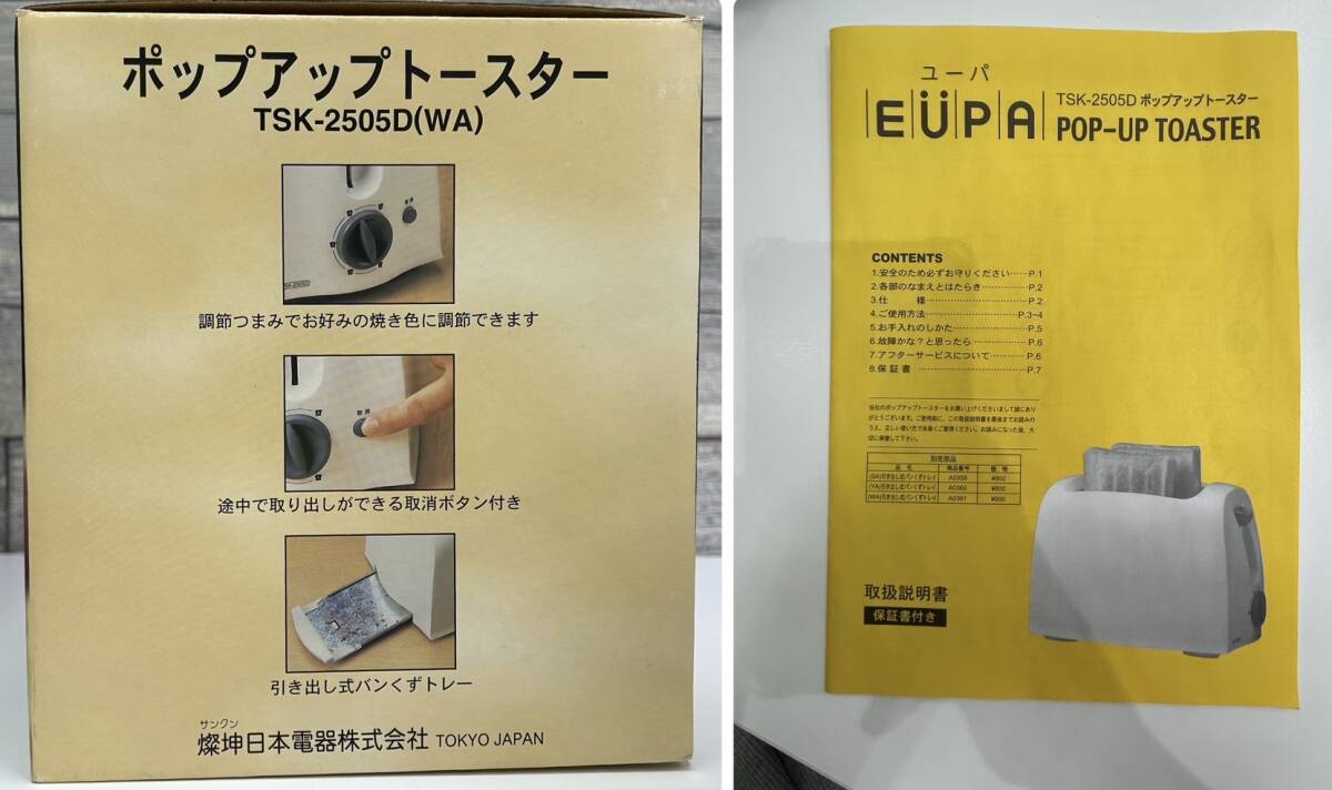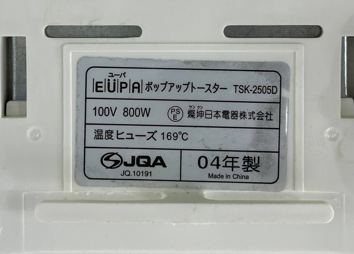 〇レトロで可愛い ポップアップトースター TSK-2505D WA 未使用 稼働 EUPA ユーパ 4~8枚切り対応 ホワイト くずトレー【4478SS】I22 | ||