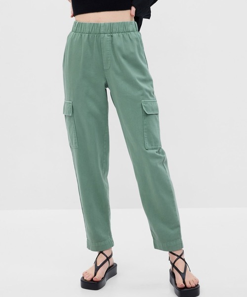 キーワード:カーゴパンツ レディース ウエストゴム スタンダード テーパード フルレングス レギュラー 無地