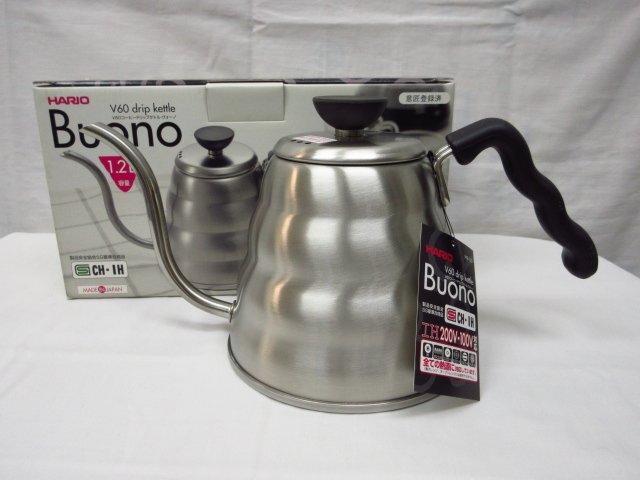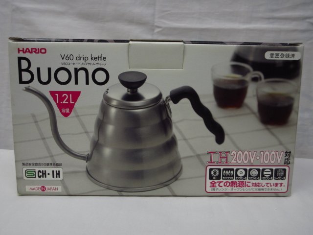 m4875 箱付き未使用保管品 HARIO 珈琲ドリップケトル ヴォーノ 1.2L容量 ステンレス製 VKB-120 IH対応(すべての熱源に対応)
