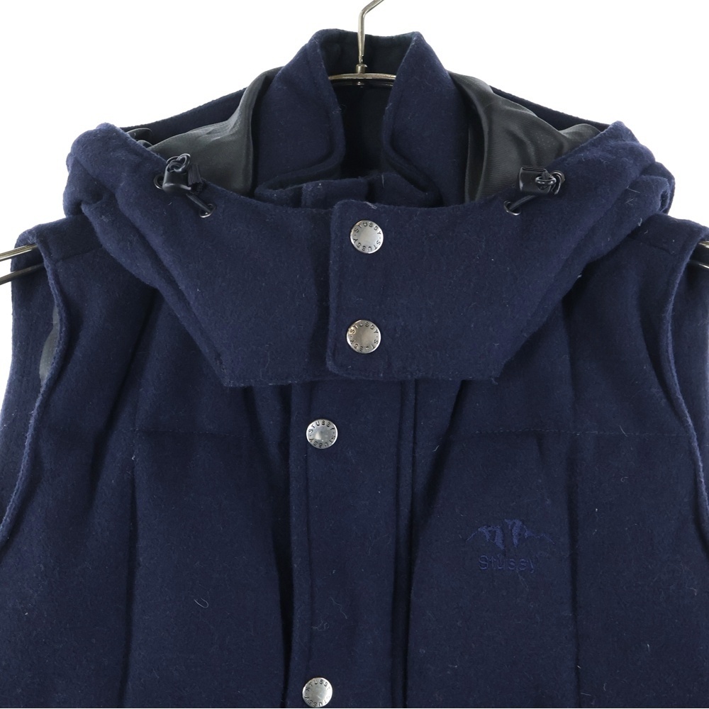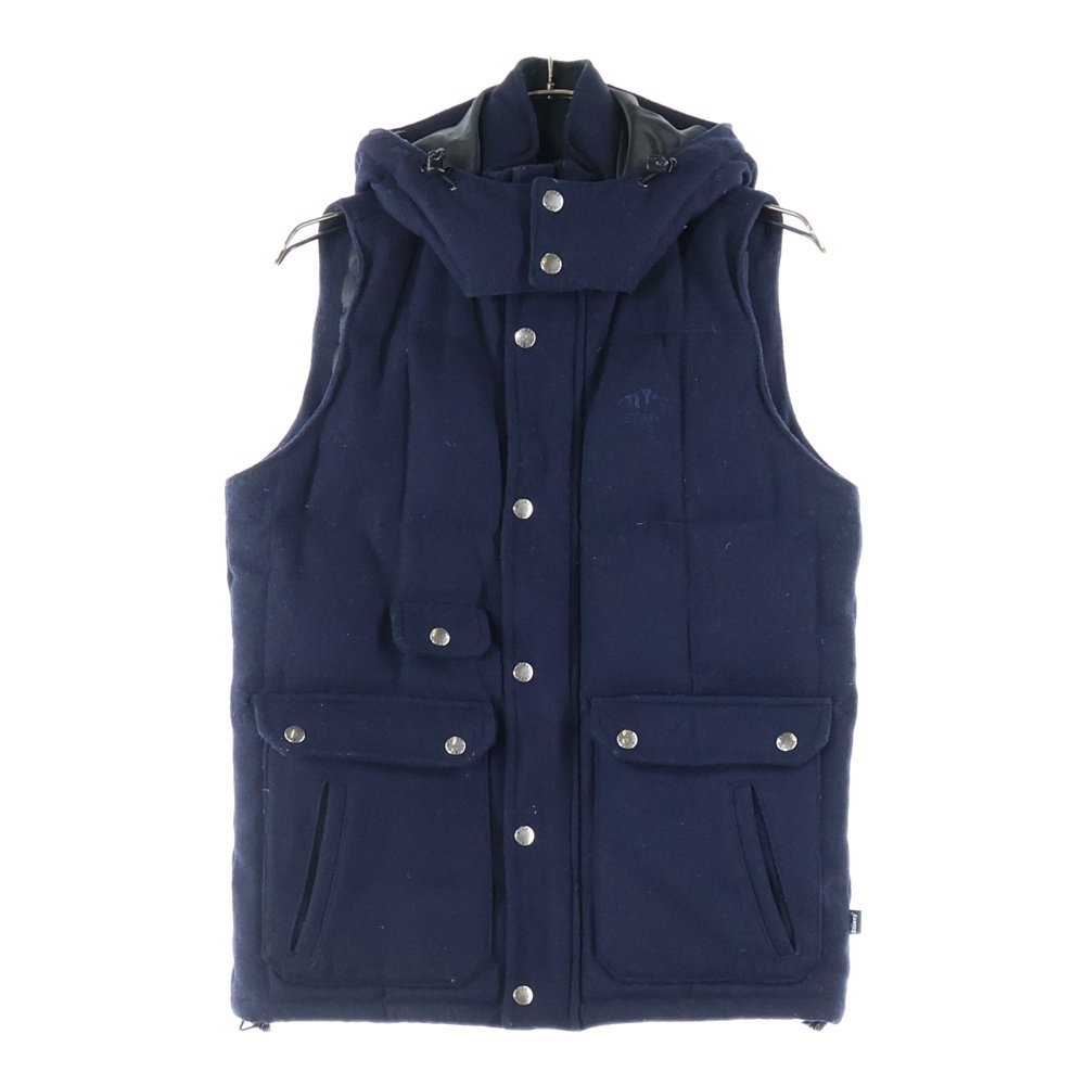 STUSSY ステューシー ウール フード付き ダウンベスト ネイビー