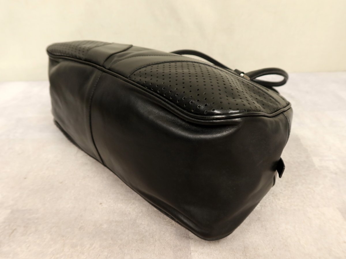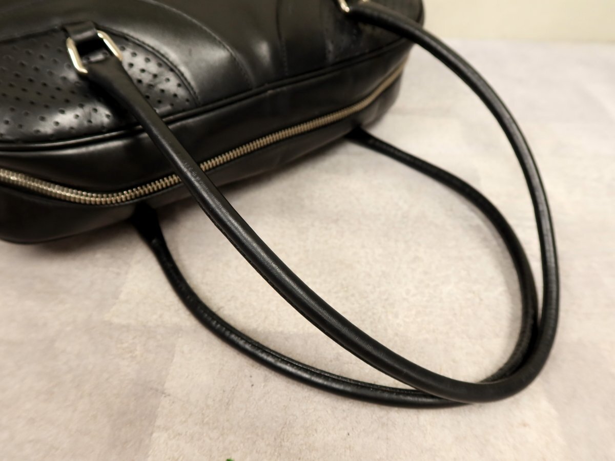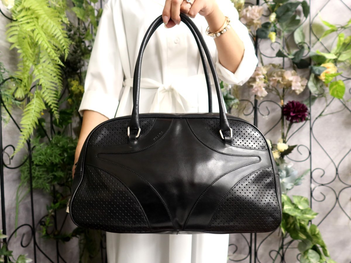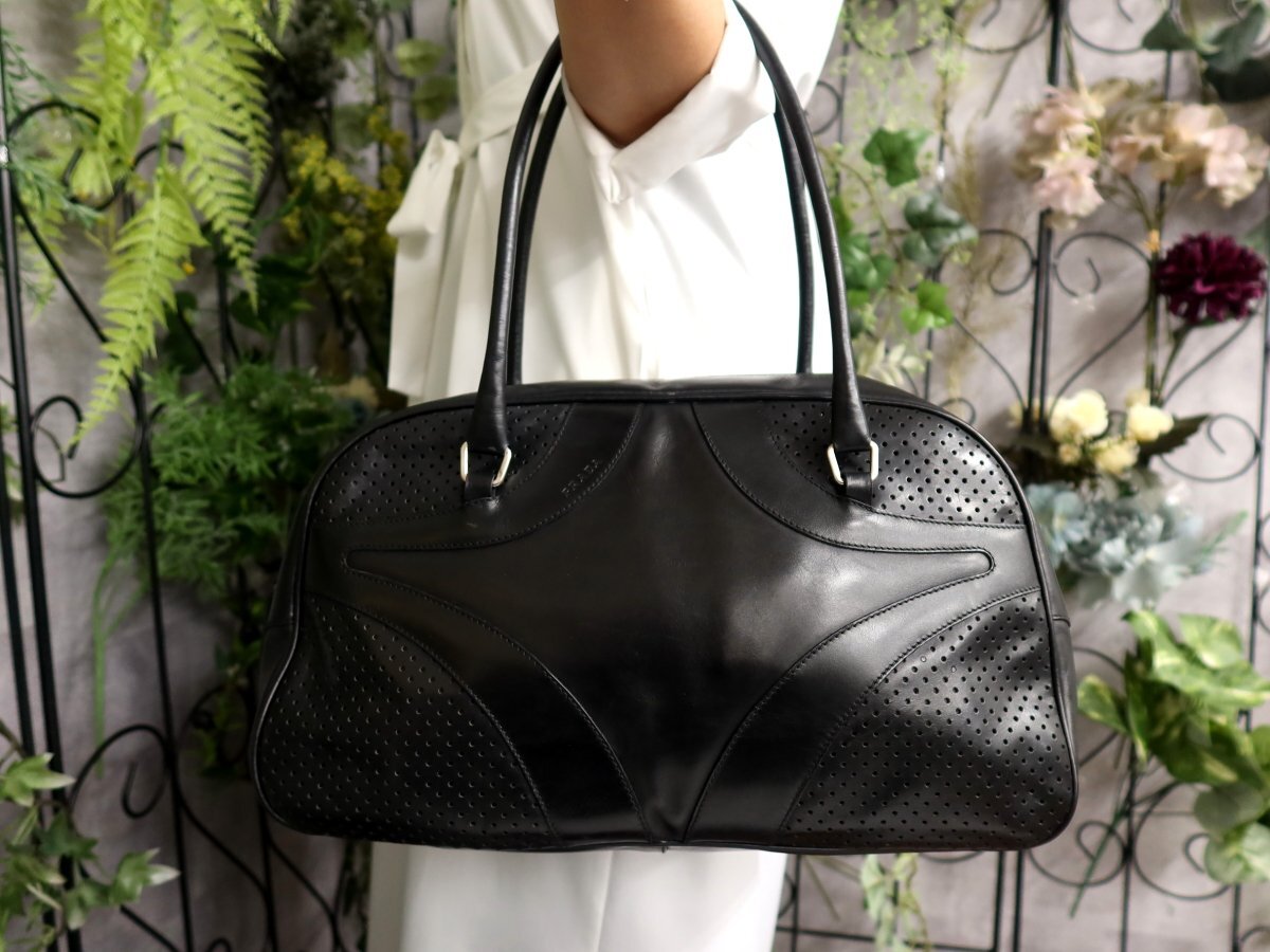 ●超美品●PRADA プラダ●ロゴ型押し●パンチング●カーフ レザー 本革●ハンド ボーリング バッグ●黒●SV金具●イタリア製●B5●Js60930