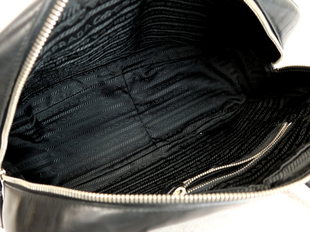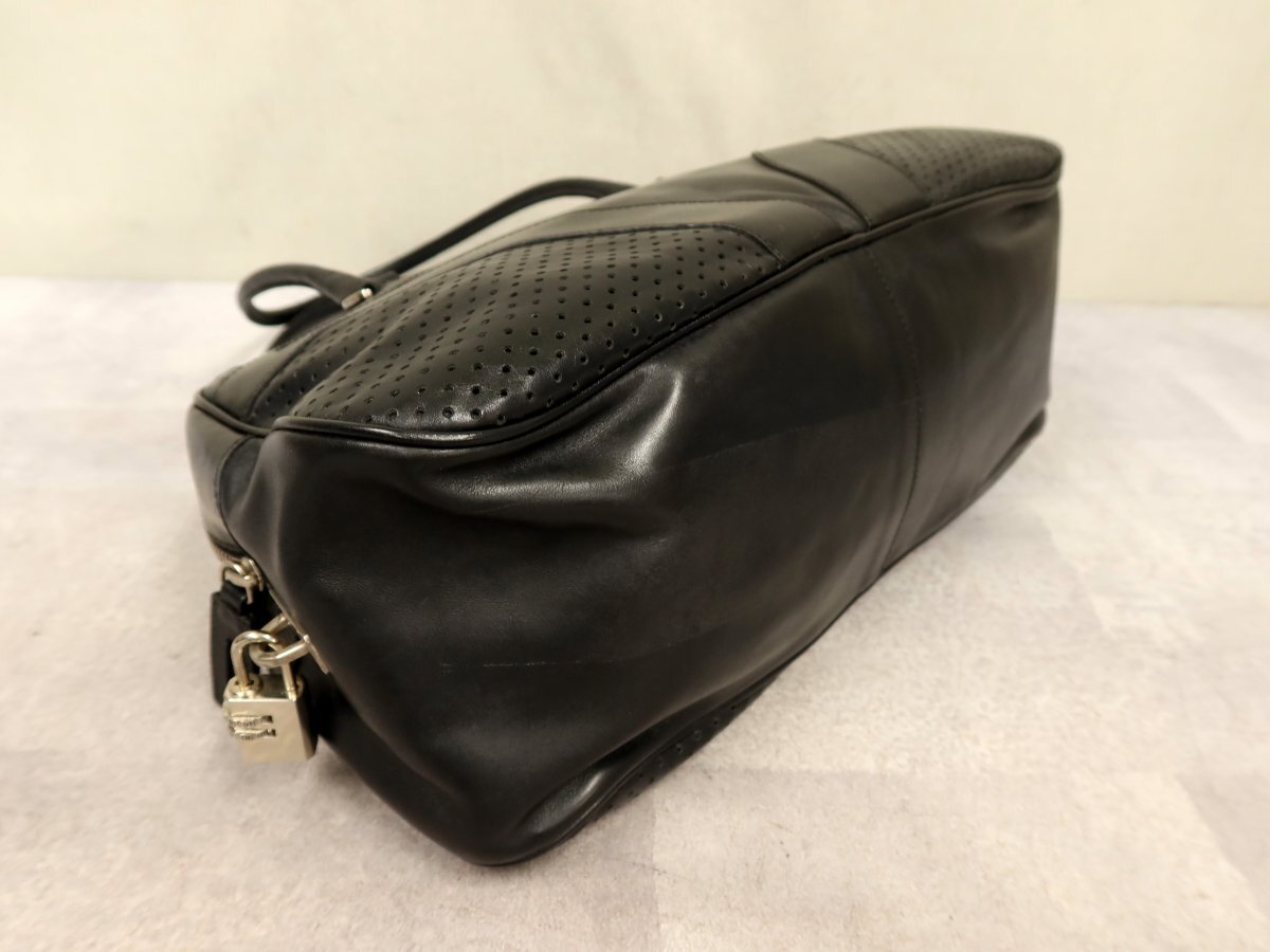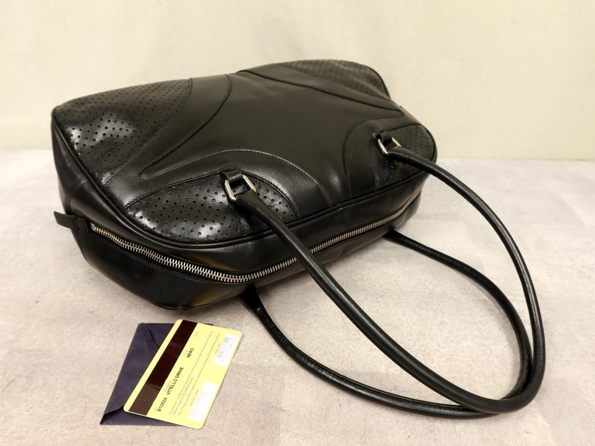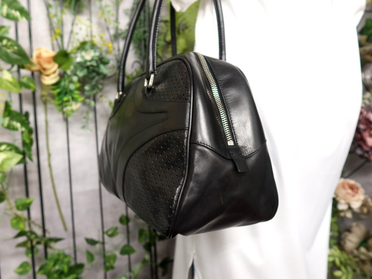 ●超美品●PRADA プラダ●ロゴ型押し●パンチング●カーフ レザー 本革●ハンド ボーリング バッグ●黒●SV金具●イタリア製●B5●Js60930