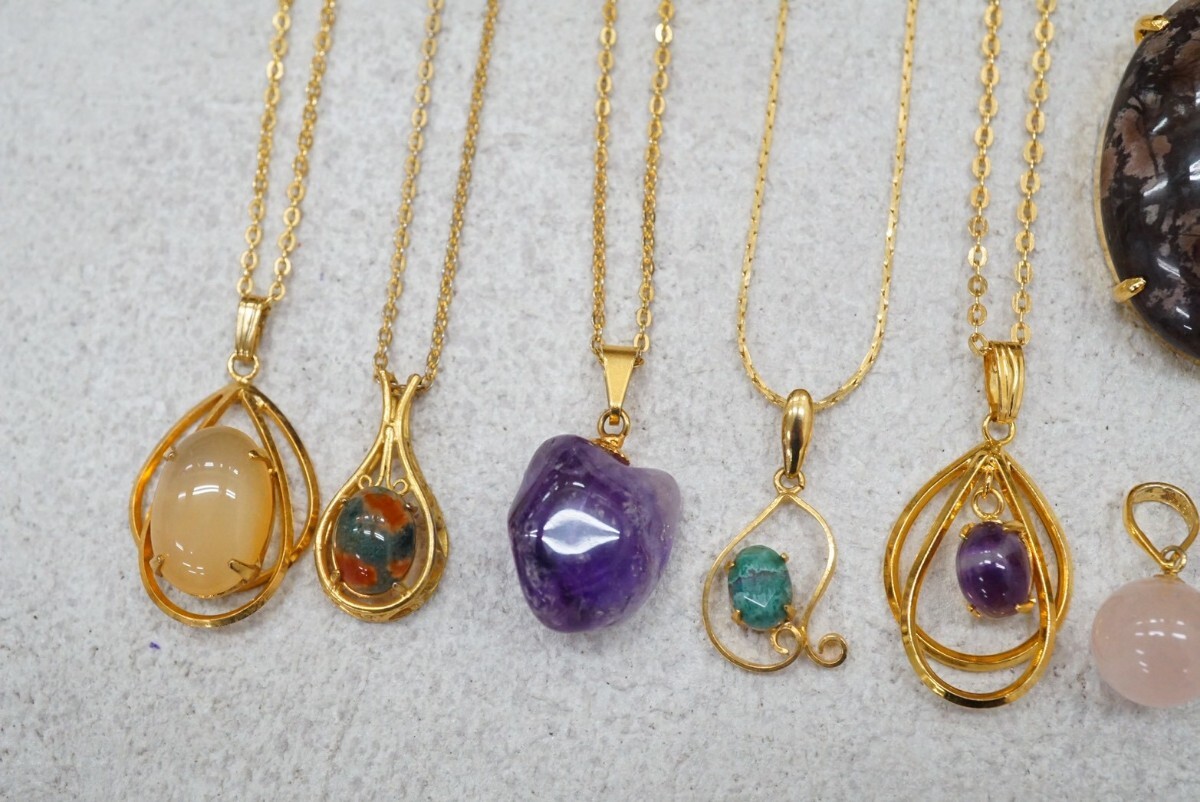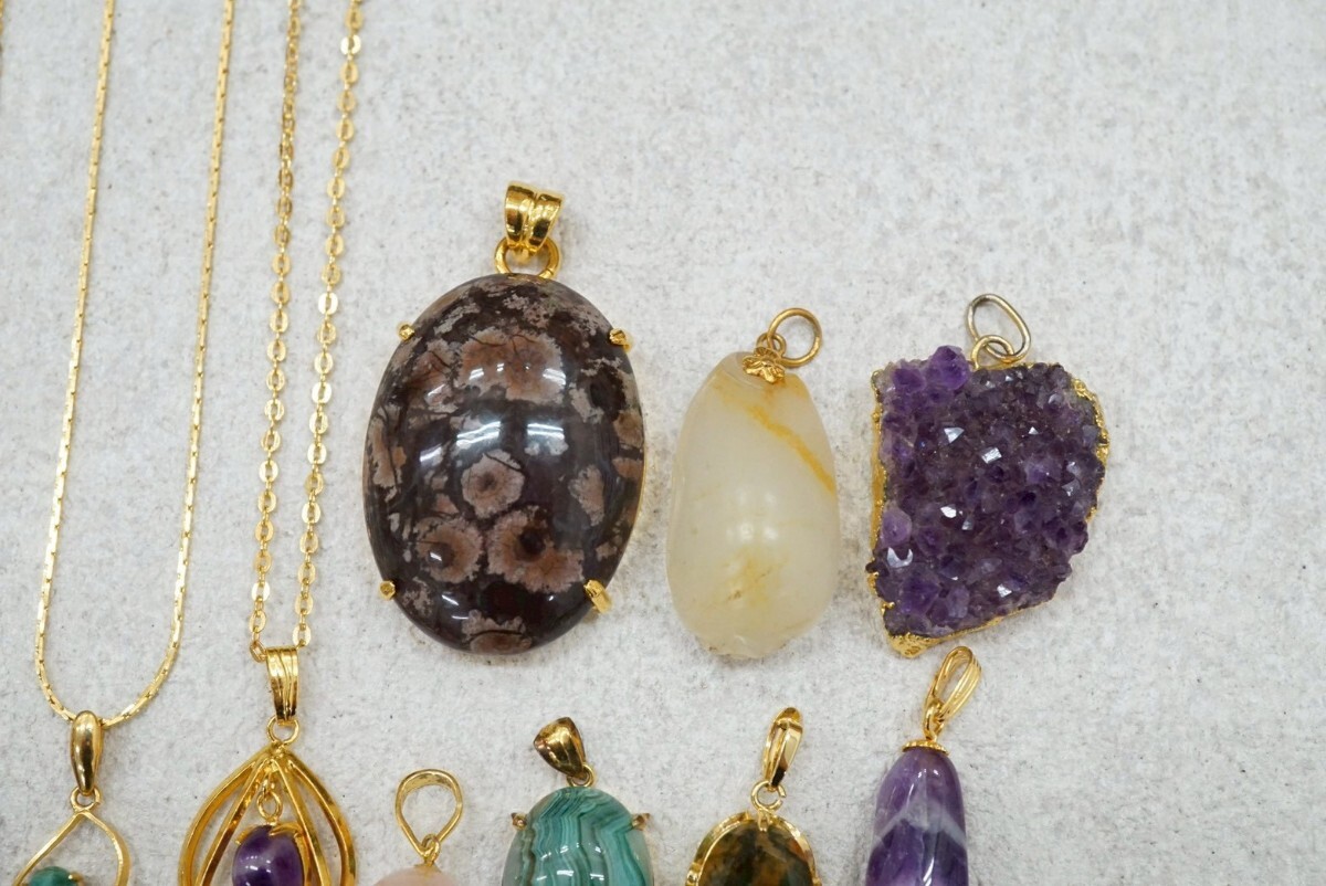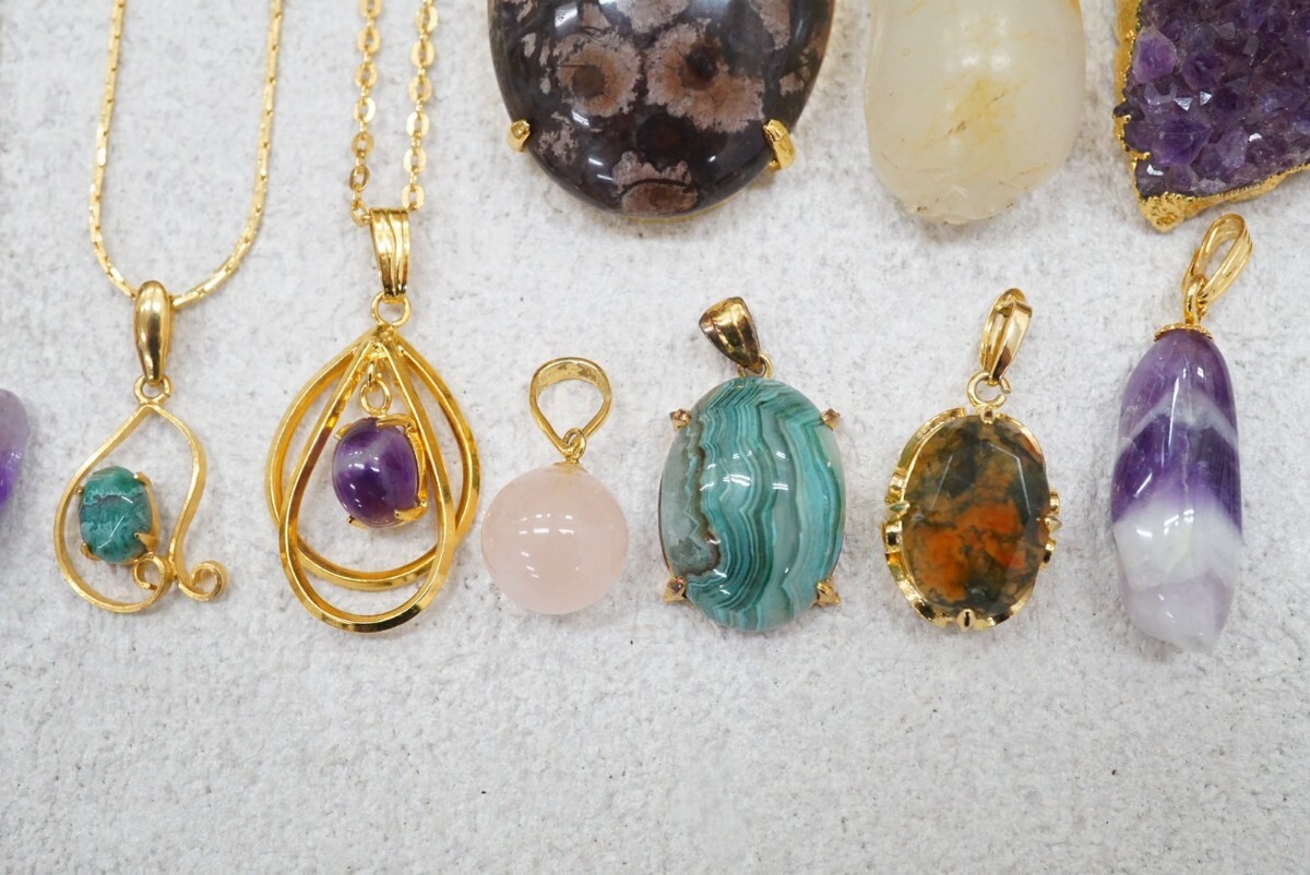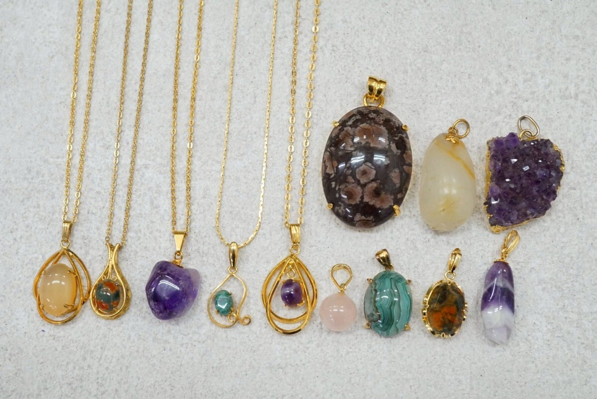C323 全て天然石 カラーストーン ゴールドカラー ネックレス ペンダント 12点セット ヴィンテージ アクセサリー 大量 まとめて おまとめ