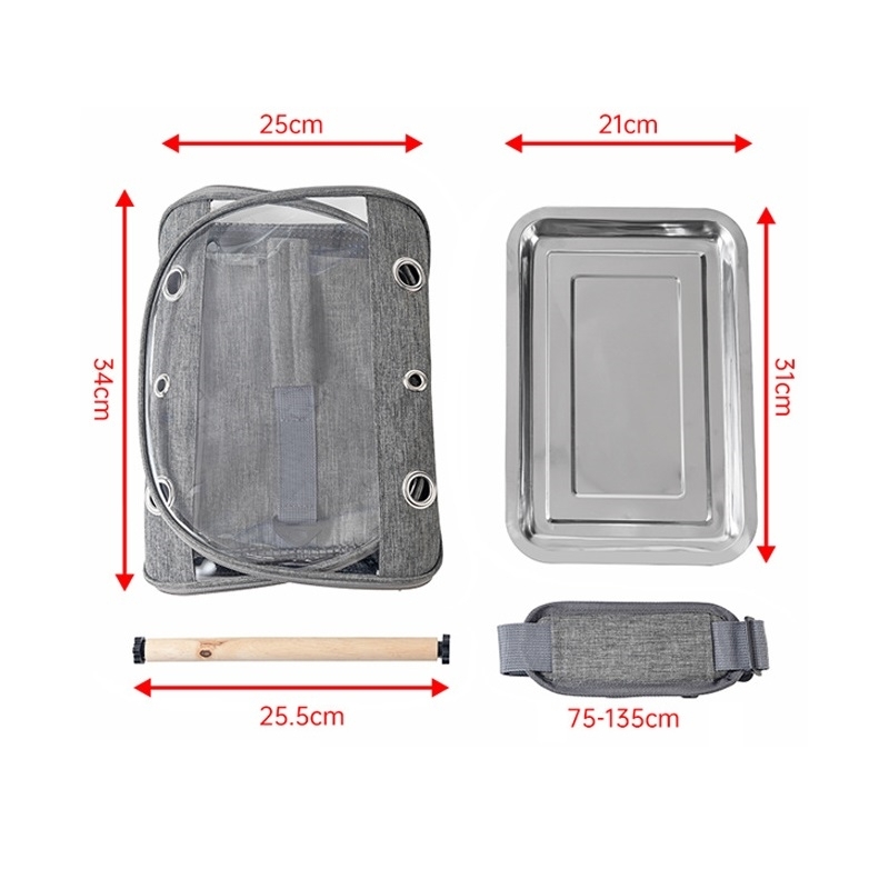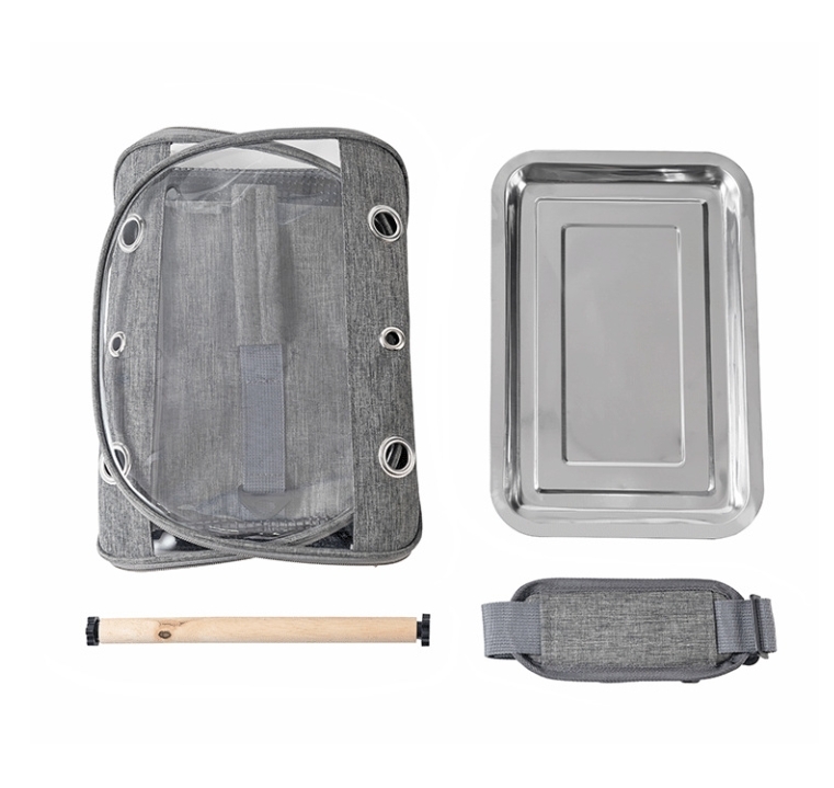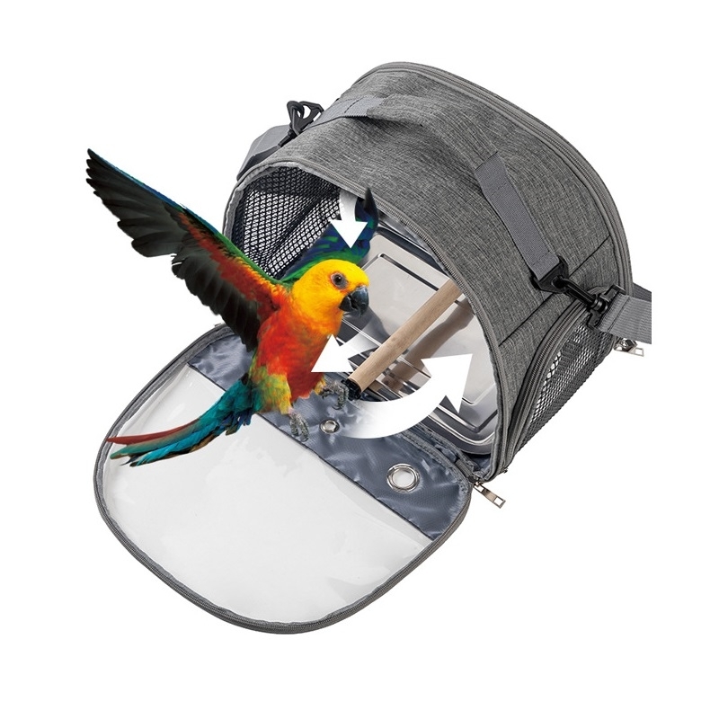 散歩、通院、旅行、日光浴、防災、避難などお出かけするのに大活躍の鳥用キャリー。ケージ掃除中の遊び場としても。