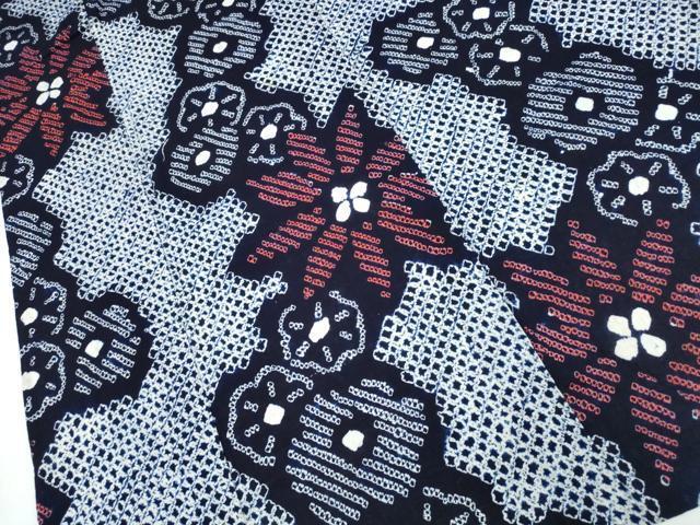 | 【綿】 状態は接写画像のように表地にヤケ、上前胸付近・右袖前に薄いシミがございますが その他特に目立ったシミ汚れなどもなく大変良い状態です。 人気の高い“有松鳴海絞り”の浴衣でございます。 “鳴海絞り”ならではの表情を生み出す立体感と 淡いぼかしで息を吹き込まれ、 今にも動き出しそうな迫力を放っております。 夏祭りや花火大会、これから増えるイベントに連れ立って、 より夏をお楽しみ下さいませ。 大変上質な逸品になります。 お安く出品致しますので、是非この機会にいかがでしょうか?