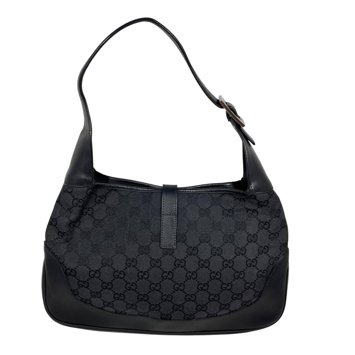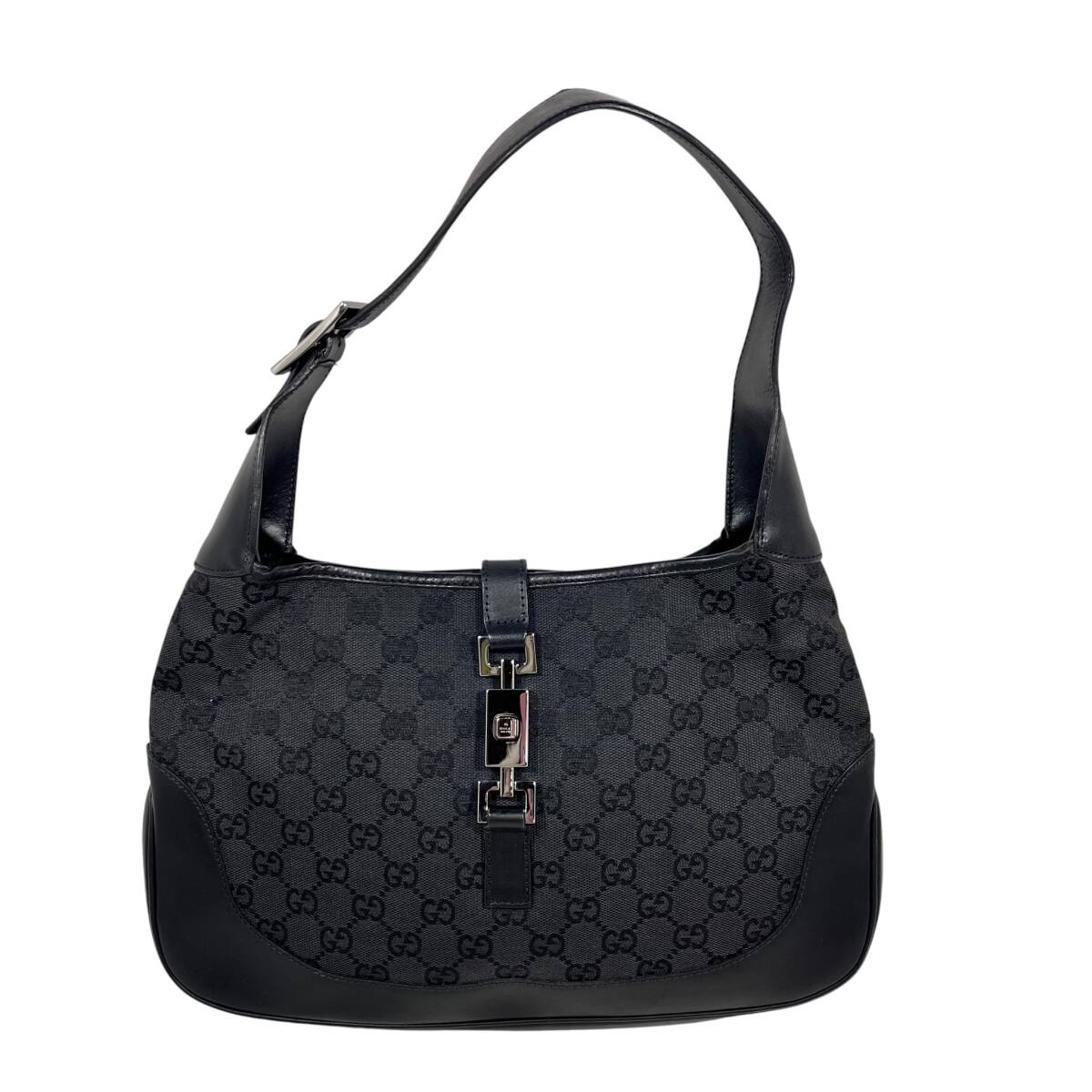 This vintage GUCCI Jackie bag in black GG canvas is a timeless icon of understated luxury. Featuring the signature piston lock closure and minimalist hobo silhouette, this bag combines heritage design with everyday functionality. The black-on-black GG monogram pattern offers a sleek and versatile aesthetic, while the leather trim adds durability and refinement. A perfect companion for both casual and formal occasions, this piece reflects the enduring elegance of the Gucci legacy.