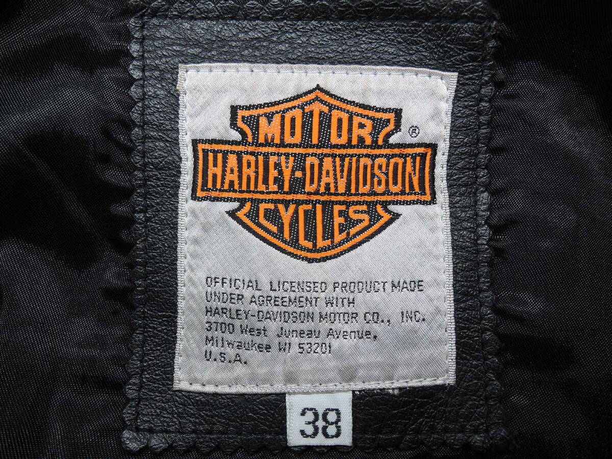 [管理番号:069] ハーレーダビッドソン 本革 革ジャン ライダース 牛革100% サイズ:38 (Mサイズ) 【状態:程度上】 難あり *ジッパーの爪6カ所取れていますがジッパーはちゃんと閉まります。(画像有り) 他にも画像が御座いますので宜しければご覧になってください。 ハーレーダビッドソン 革ジャン | ||