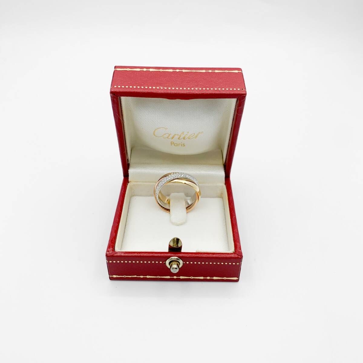 ルイ・カルティエの豊かな想像力によって1924年に誕生した、歴史の長いトリニティリングは、メゾンを象徴するジュエリーのひとつ。 永く愛用できるアクセサリーとして人気の名品。 カルティエらしい芸術性の高いデザインで日常のスタイルに彩りを添える。 外装仕上げ済みで安心してご愛用いただけます。