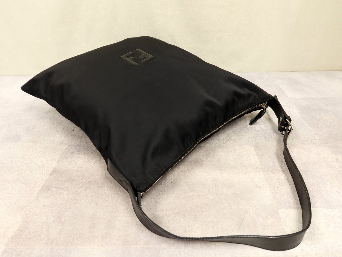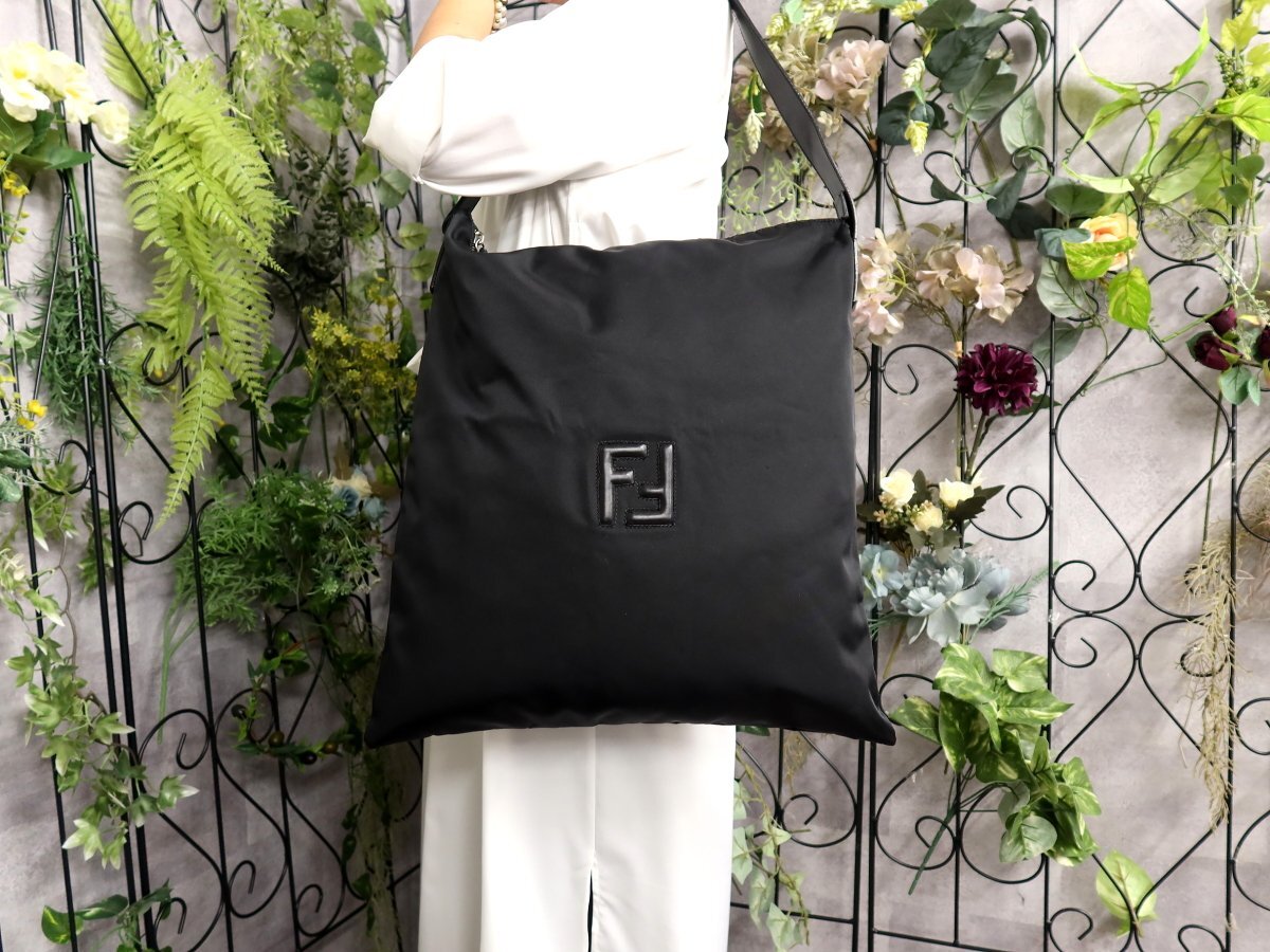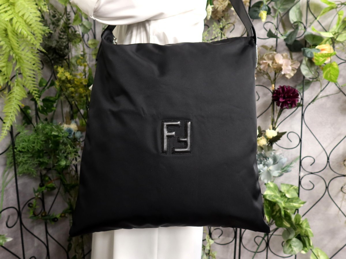 ●超美品●FENDI フェンディ●FFロゴ●カーフ レザー 本革●ショルダー バッグ●黒●シルバー金具●A4 収納●書類 かばん●Js60835
