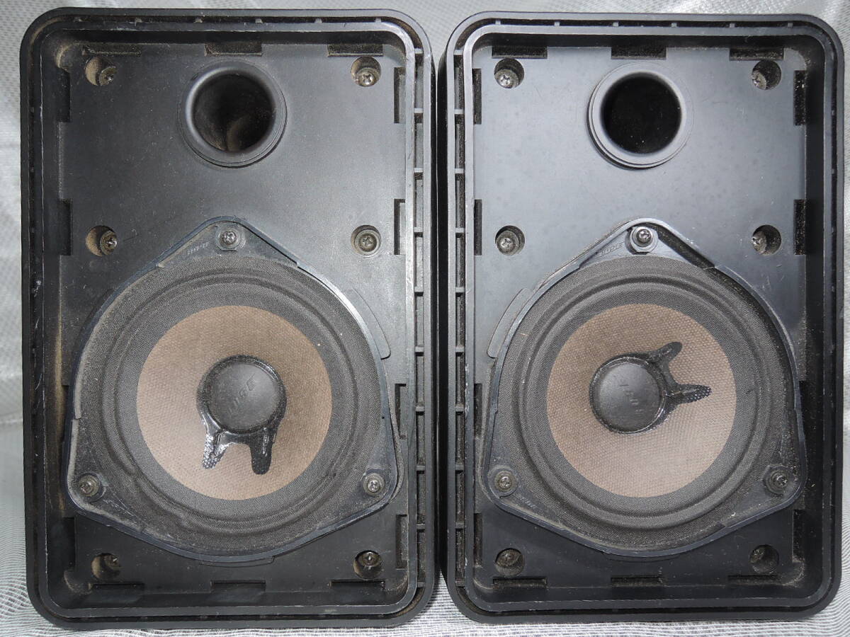 [管理番号:025] Bose 101MM 2本 スピーカー 【状態:中古品】 程度良 完動品 *サランネットありません。 他にも画像が御座いますので宜しければご覧になってください。 101MM <仕様> MODEL 101MM ユニット構成:11.5cmフルレンジドライバー X 1 再生周波数帯域:70Hz ~ 17kHz インピーダンス:6Ω 許容入力:45W rms(IEC268-5)、150W (peak) 感度:86dB SPL、1W、1m 指向特性:水平:130° 垂直:130° 入力端子:スナップイン・ターミナル、2P標準ジャック 外形寸法:232 (W) X 154 (H) X 152 (D) mm 質量:2.1kg | ||