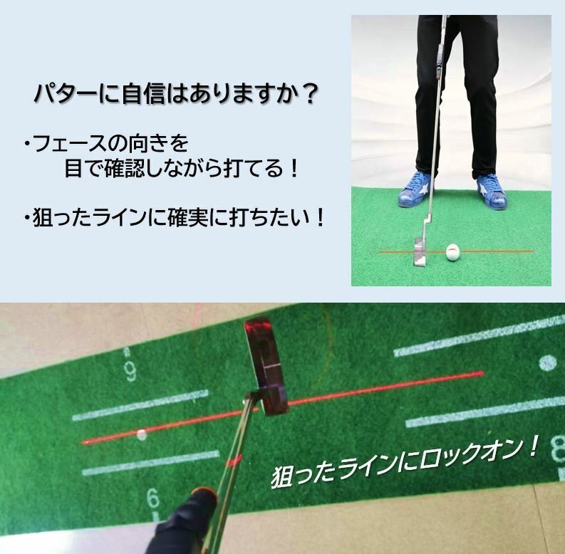 レーザーラインで方向を合わせ確認しながらパター練習ができる。