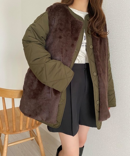 キーワード:ジャケット ノーカラージャケット レディース キルティング ロング丈 秋 冬