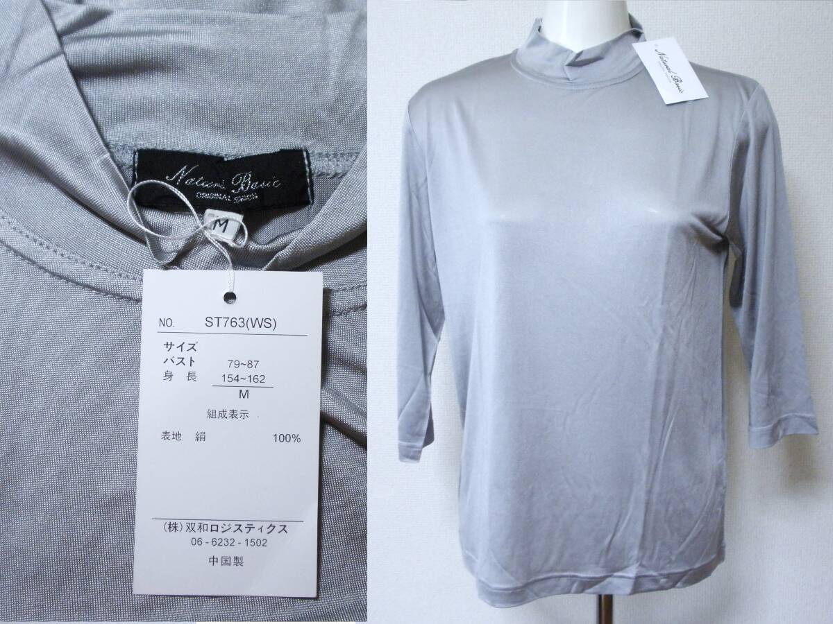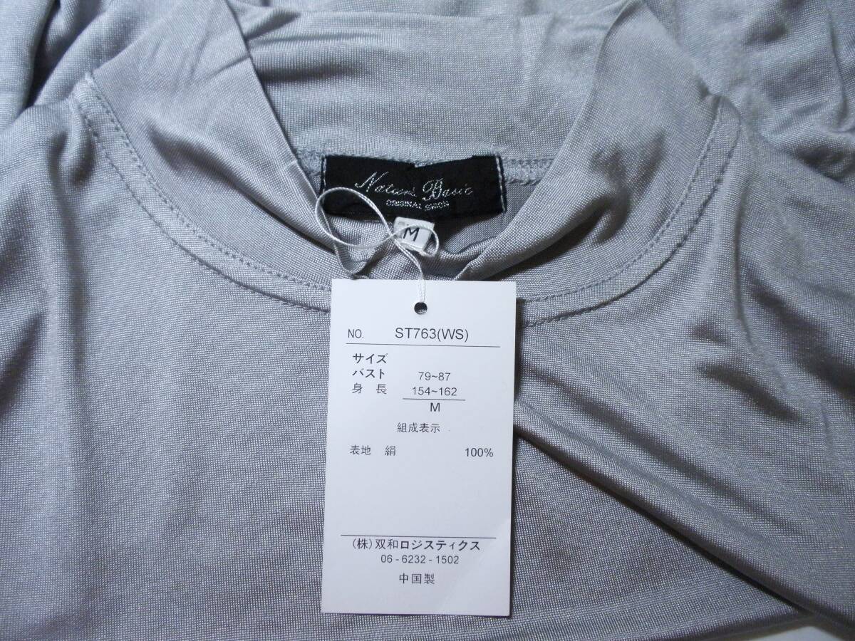 未使用 シルク 絹100% グレー カットソー なめらか 光沢感 テロテロ ストレッチ★レディース インナー