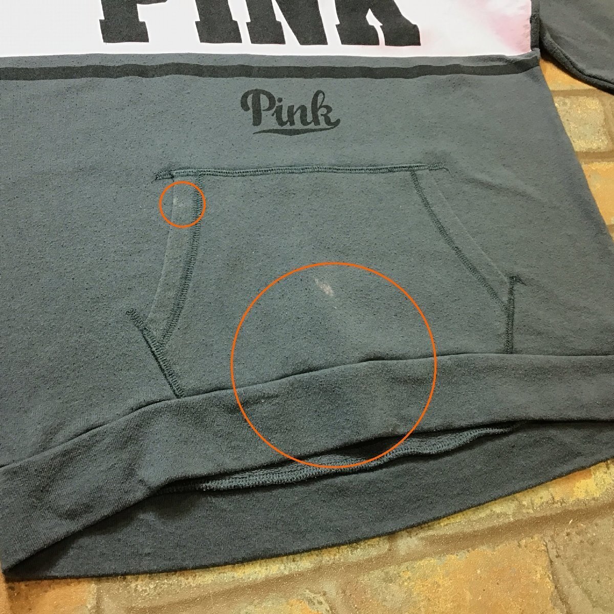合計落札金額¥8,000円以上で、、、 送料無料!! ※こちらからの[合計支払い金額通知]をご確認の上、お支払い下さい♪ -------------------------------- 【PINK Victoria's Secret】 ピンク ヴィクトリアシークレット BIGプリント プルオーバー パーカー ● USA輸入・正規品 ● ● 海外サイズ規格 ● -------------------------------------------------------- 全体的に毛羽立ち等の使用感有り。 ポケット口に軽微な、ポケット中央に2cm位の脱色があります。 ------------------------------------------------------ ◆ サイズ ◆ S (大きめです。) ※下記実寸のご確認をお願いいたします。 ◆ 実寸◆ 肩幅:46cm 身幅:51cm(両脇下間を計測) 着丈:67cm(背面襟元~裾を計測) 袖丈:67cm 素人採寸の為、多少の誤差はお許しください。 -------------------------------------------------------- ◆ 素材表記 ◆ コットン 60% ポリエステル 40% ----------------- | |||||