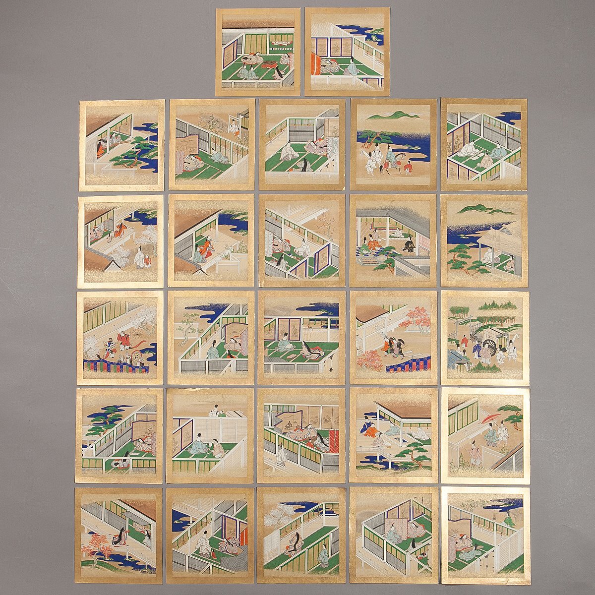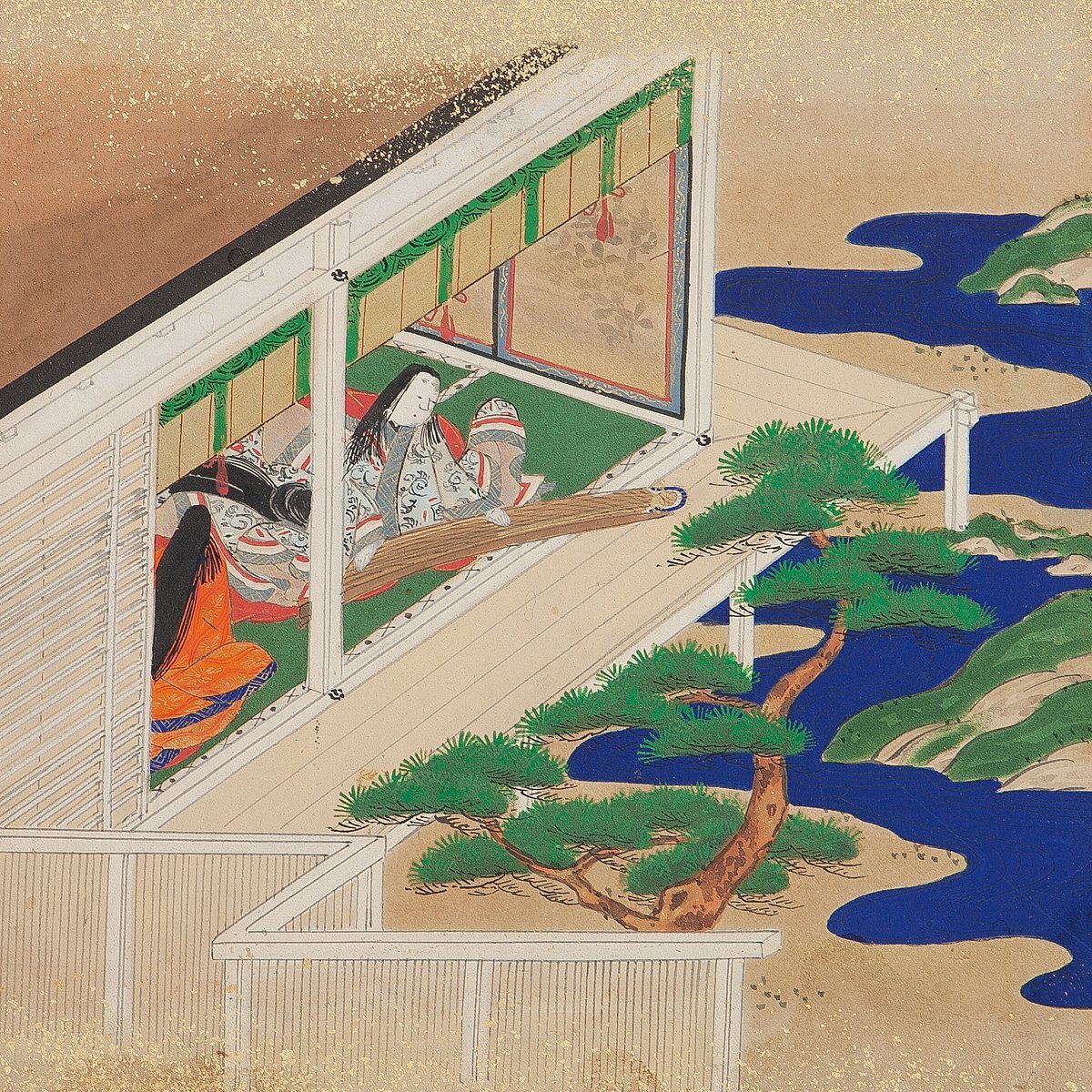 【五】伊勢物語 二十七図 江戸時代 紙本 彩色 肉筆 マクリ