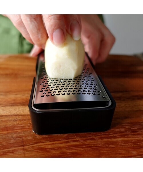 テレビでもよく紹介されている飯田屋の「エバーおろし」です。「プロが唸った殿堂入り100名品」の一つとして選ばれました。飯田屋は、世界中で300種類以上のおろし金を徹底的に試し、比較検討を重ねた結果、たどり着いた「究極の"ふわふわ"おろし金」を誕生させました。刃が鋭いので、柔らかい食材は「撫でるだけ」で「ふわふわ」とした食感を引き出すことができます。さらに便利な受け皿も付属しており、料理中の飛び散りを防ぎます。 プレゼントでまとめて購入しましたが、余りましたので、出品します。簡易包装で送らせていただきますので、ご了承ください。