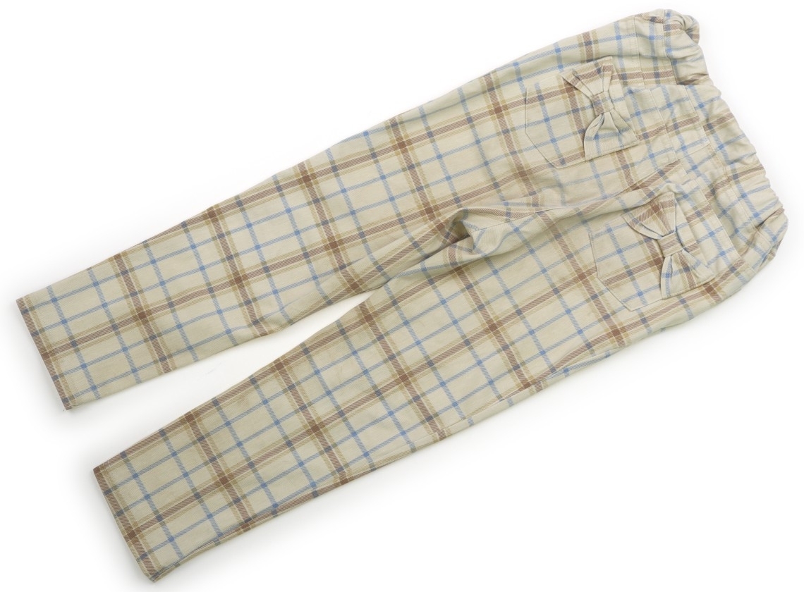 コットンやポリエステル配合生地。ウエストは総ゴムですが、捻じれています。膝全体に薄汚れ、お尻に色褪せが見受けられます。