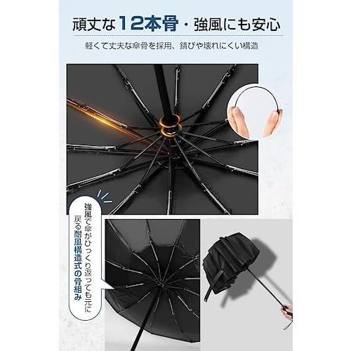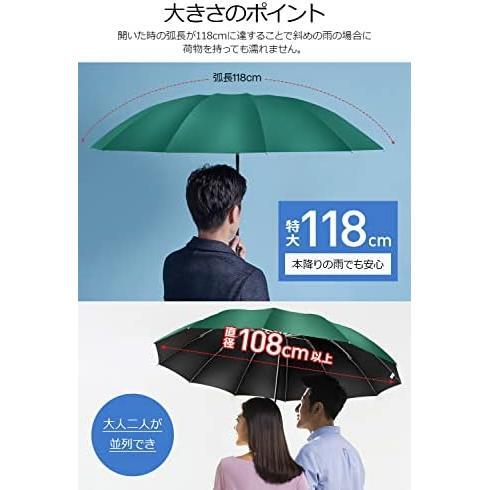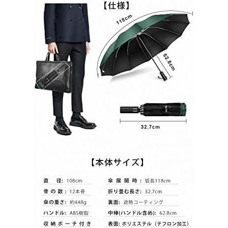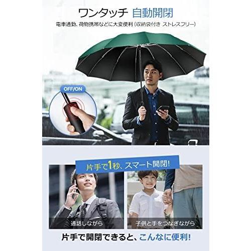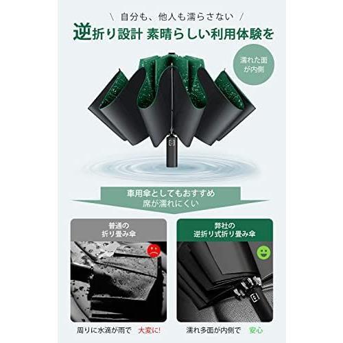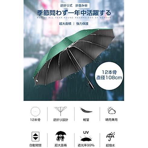 グリーン 【超大サイズ・12本骨】 折りたたみ傘 ワンタッチ自動開閉 メンズ傘 大きい 逆折り式 折り畳み傘 風に強い テフロン加工 耐風撥水