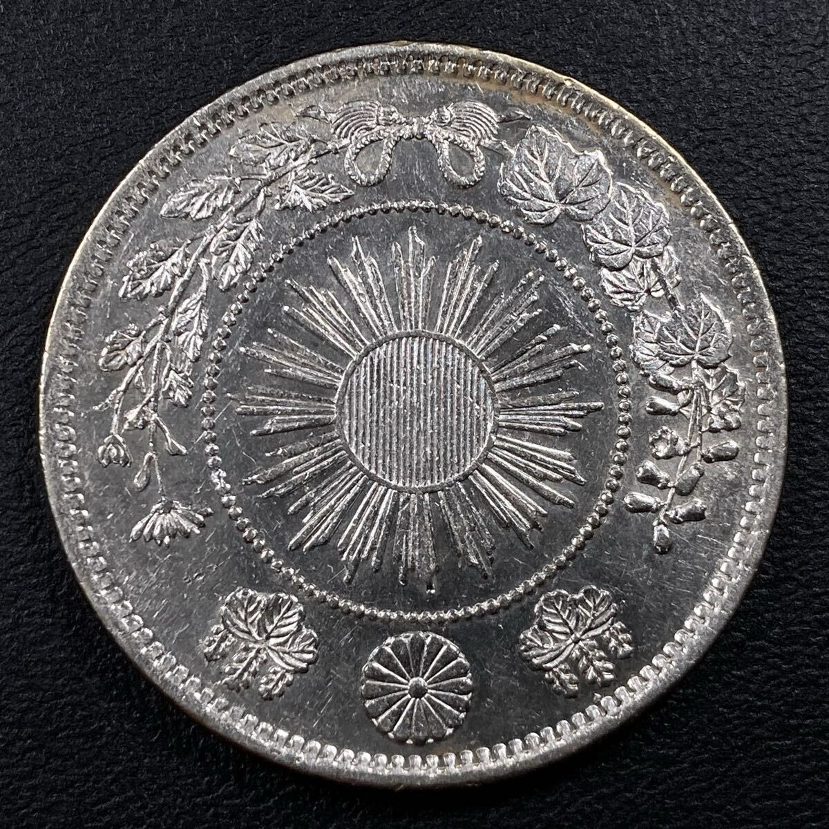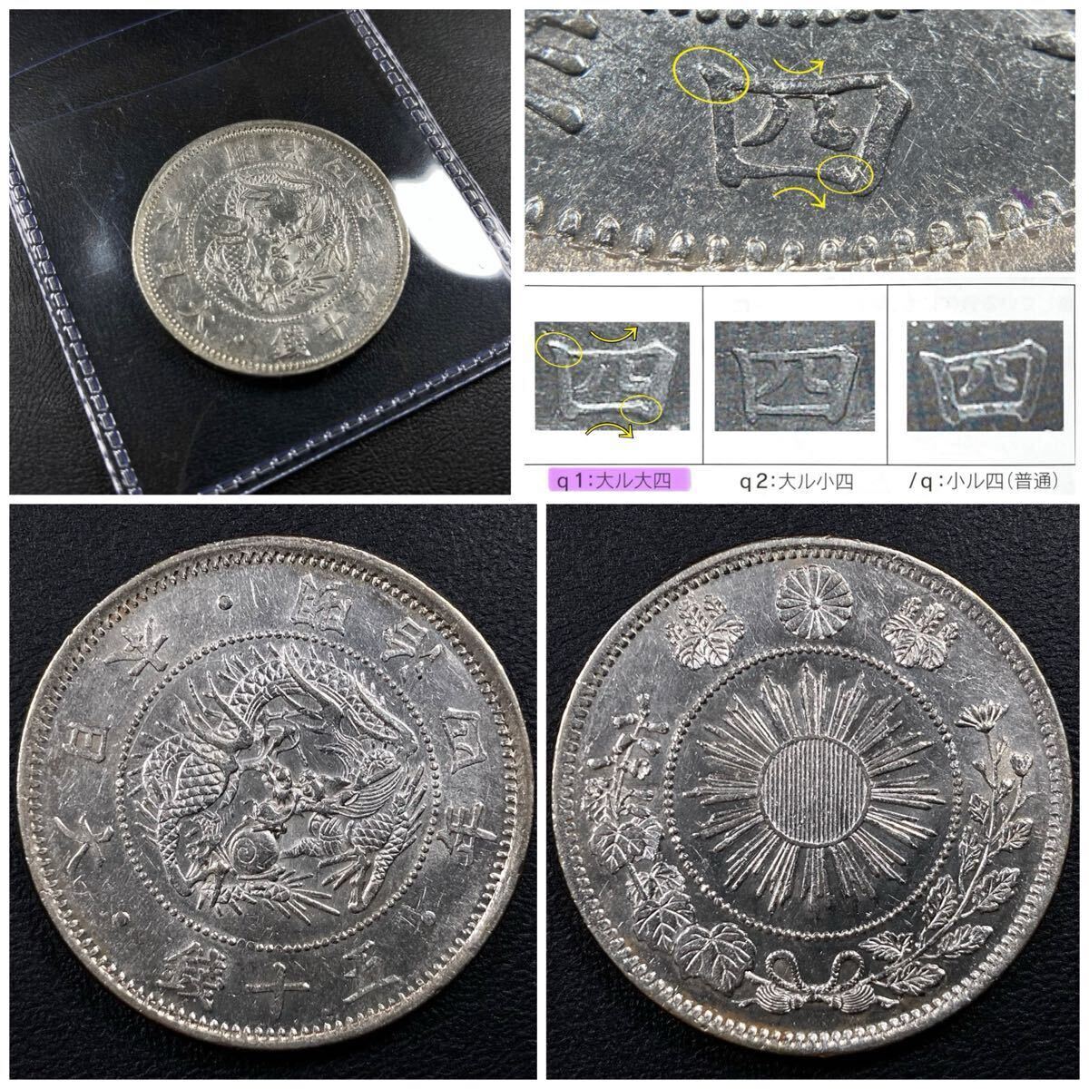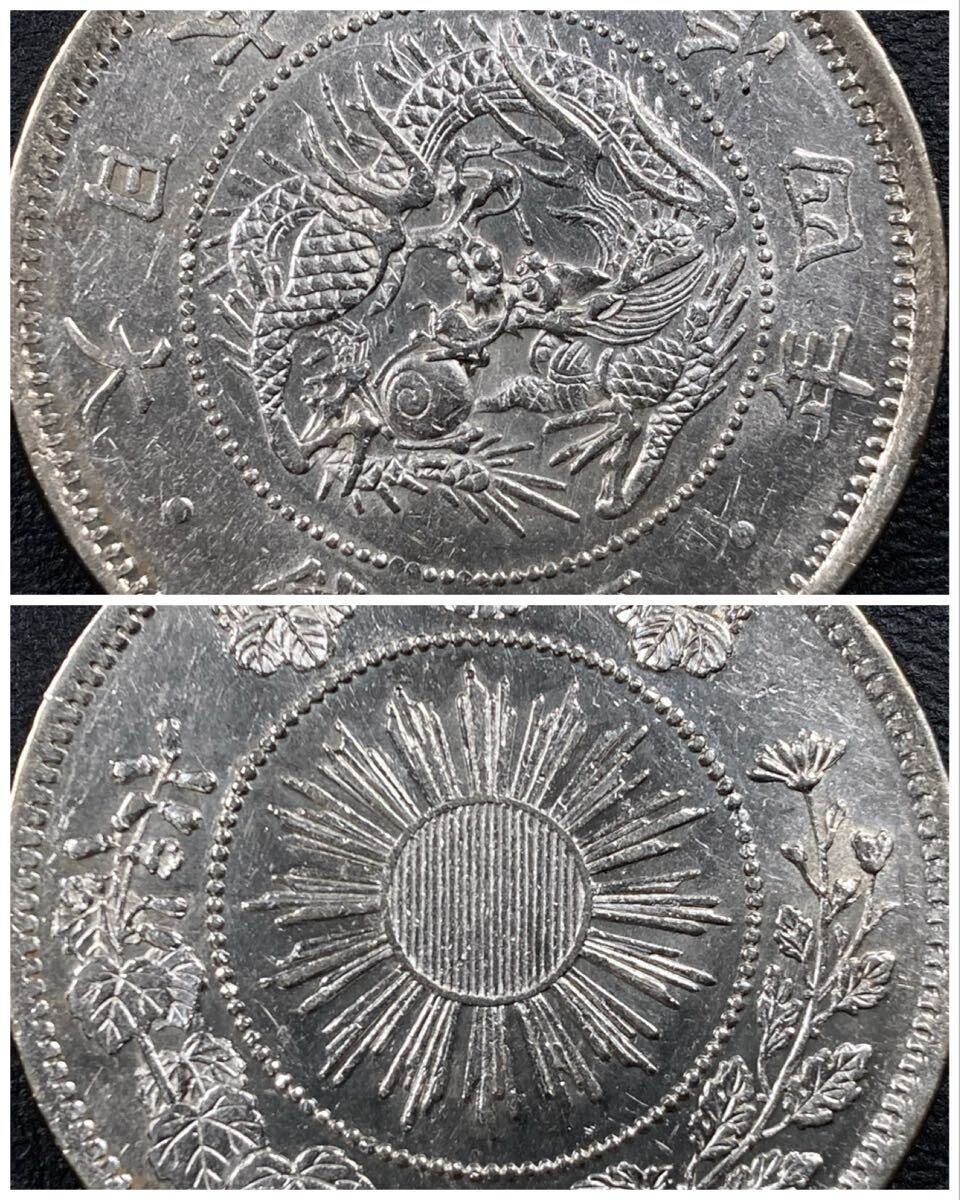 こちらは入手時極美品+の旭日竜小型50銭銀貨(明治4年)の大ル大四の稀少型になります。