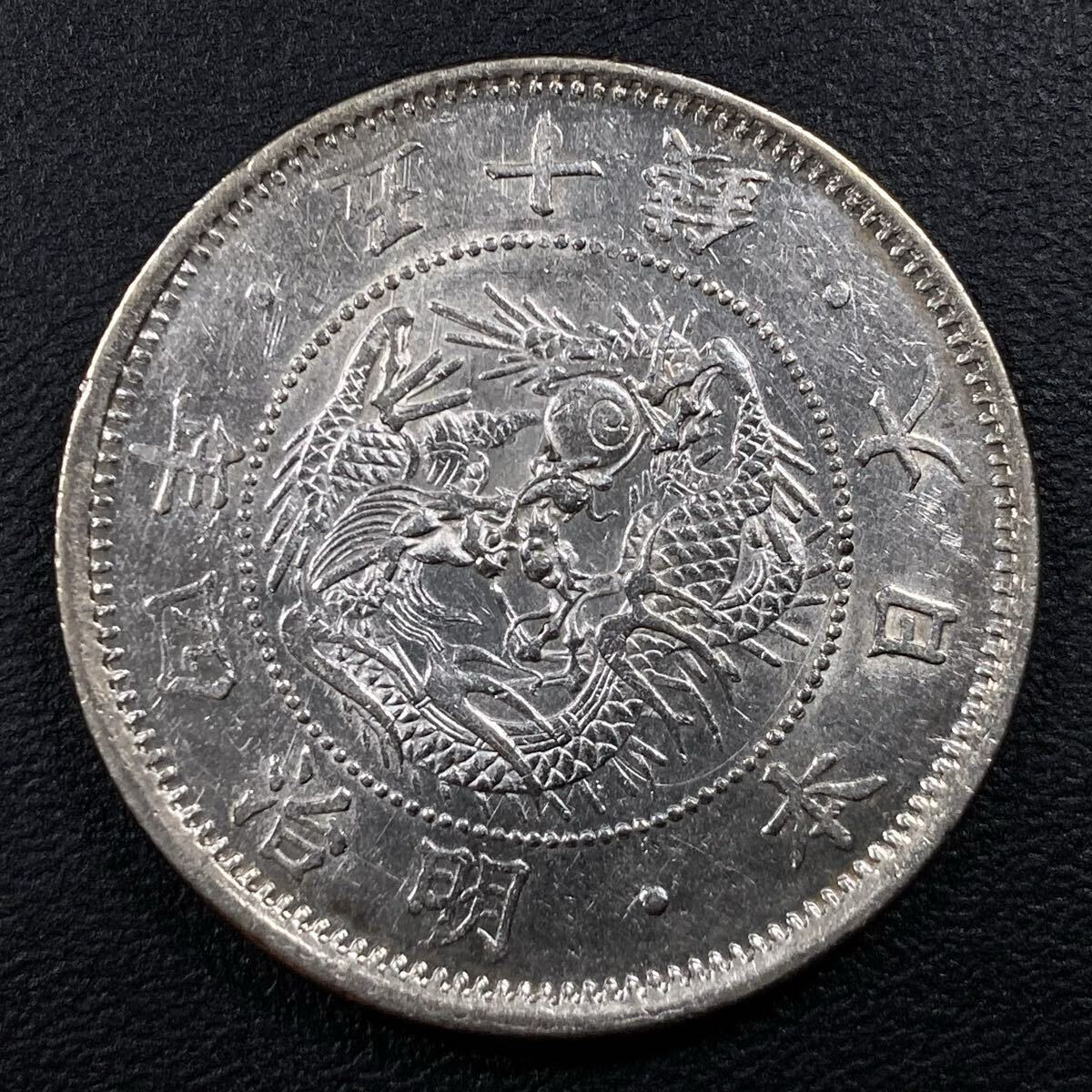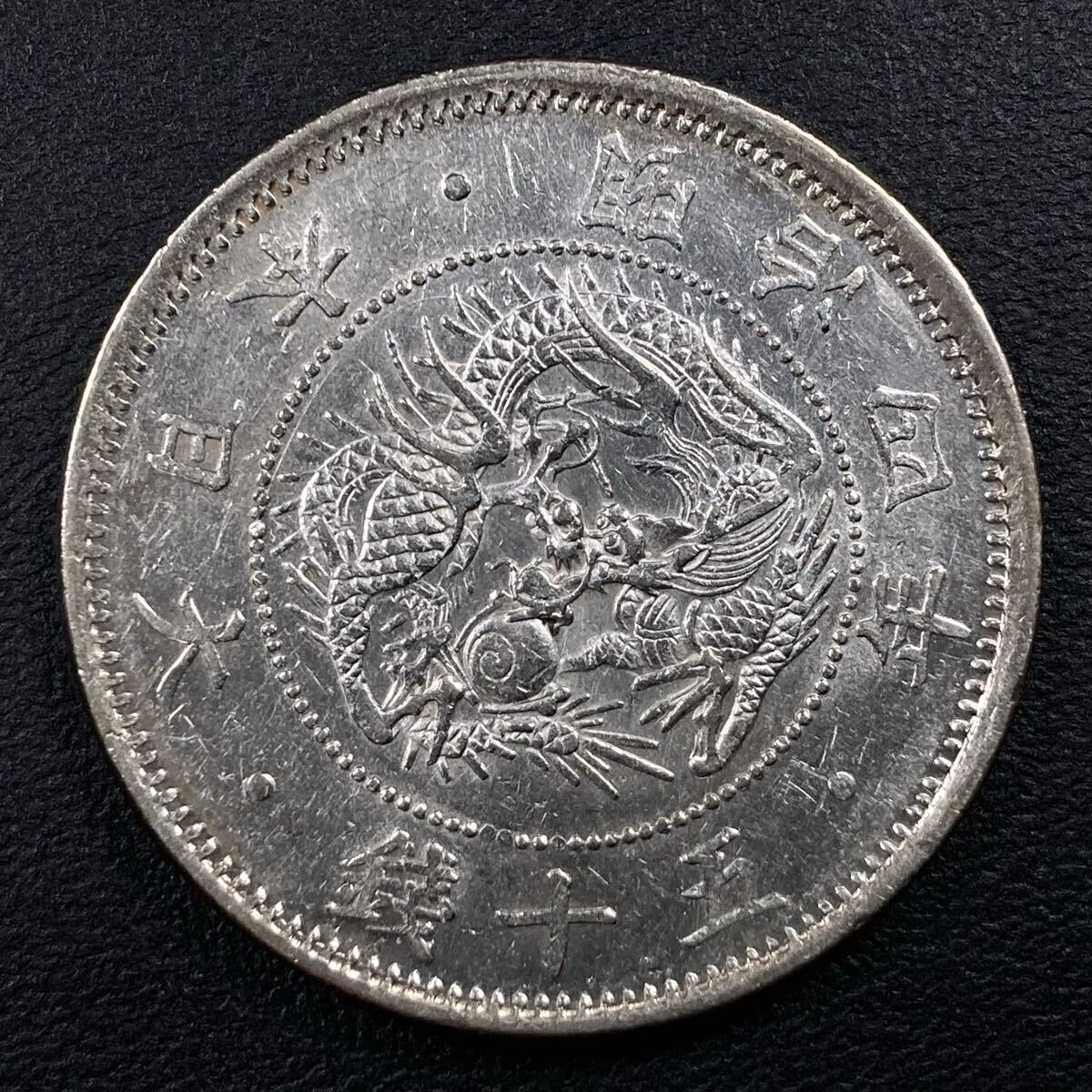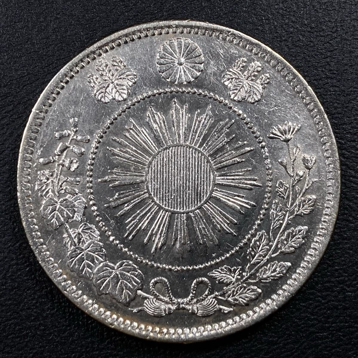こちらは入手時極美品+の旭日竜小型50銭銀貨(明治4年)の大ル大四の稀少型になります。