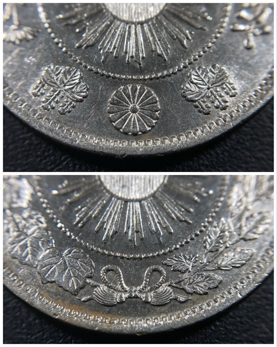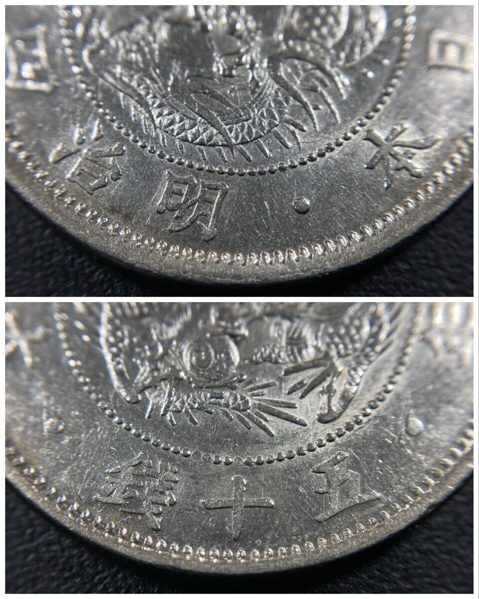 主人曰く、旭日竜小型50銭銀貨は四字の手変化が多彩な貨幣となります。