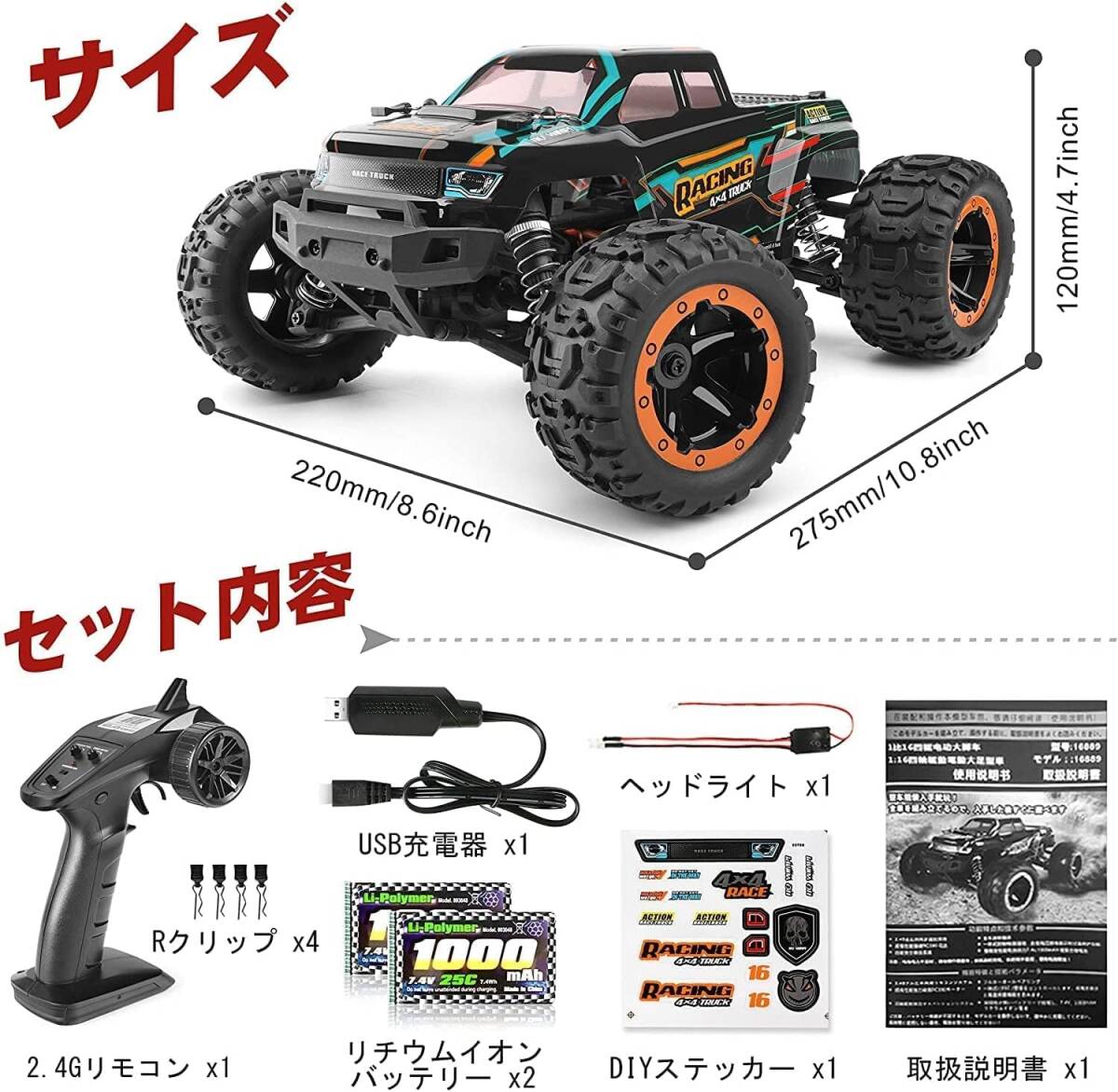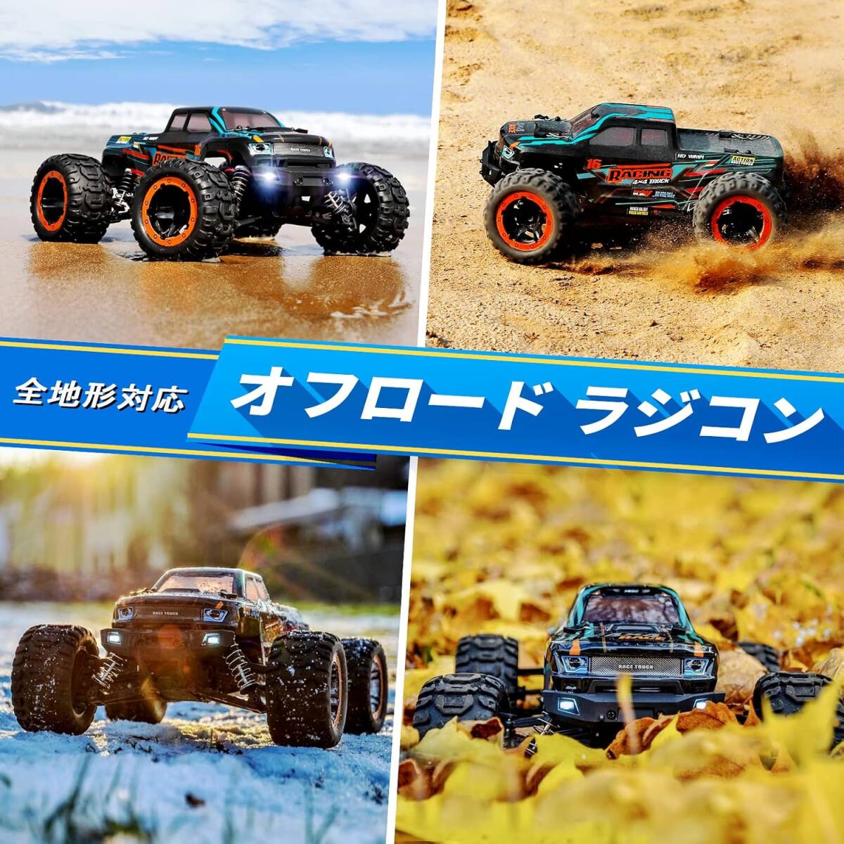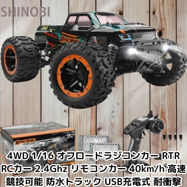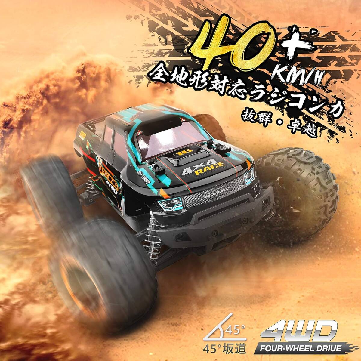 4WD 1/16スケール オフロードラジコンカー RTR RCカー 2.4Ghz リモコンカー 40km/h 高速 競技可能 防水トラック USB充電式 耐衝撃
