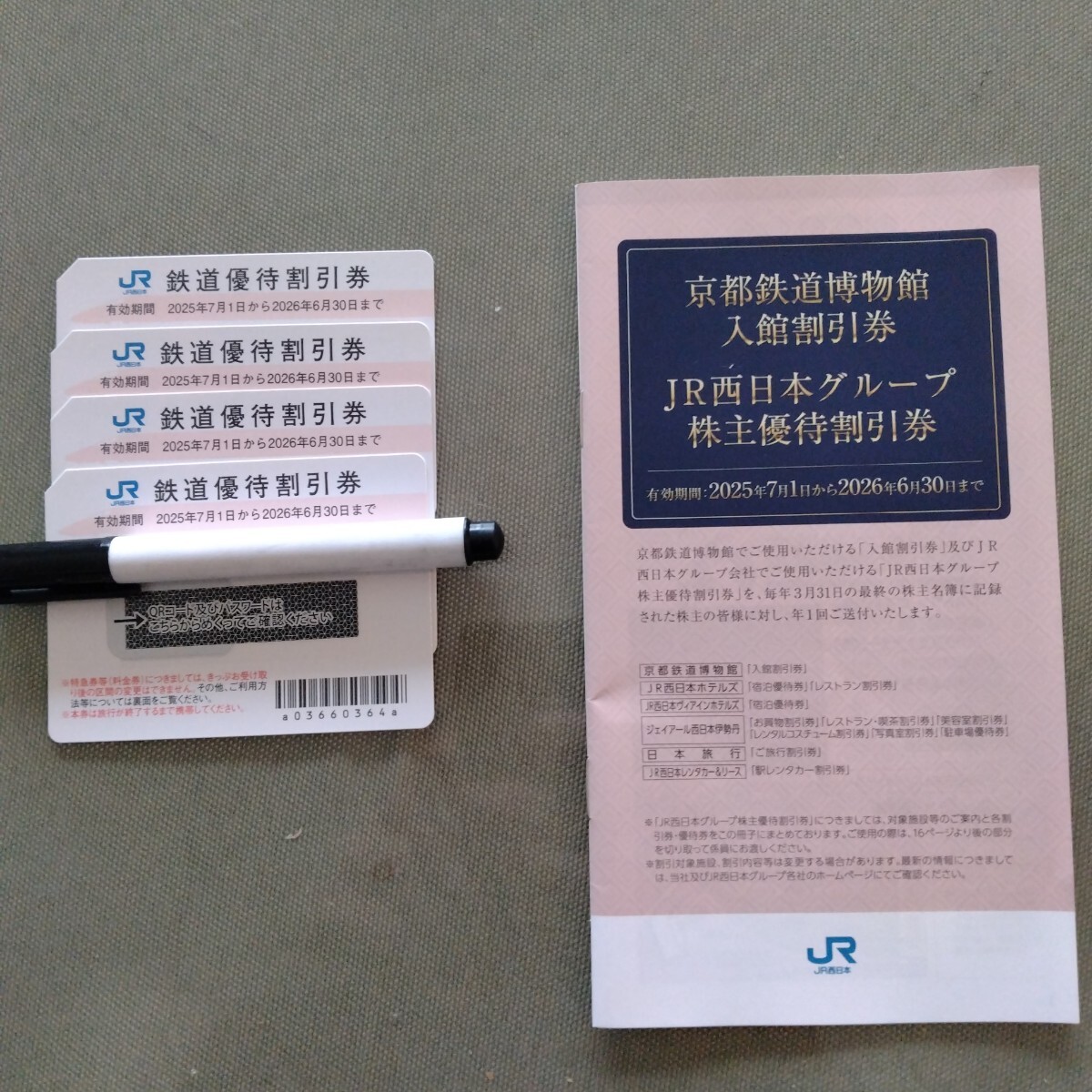 JR西日本 株主優待鉄道割引券 4枚