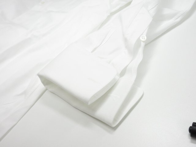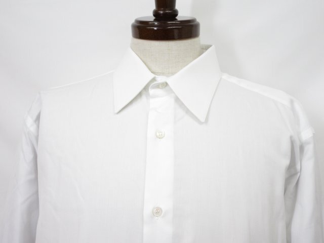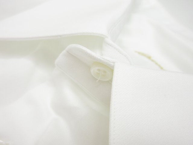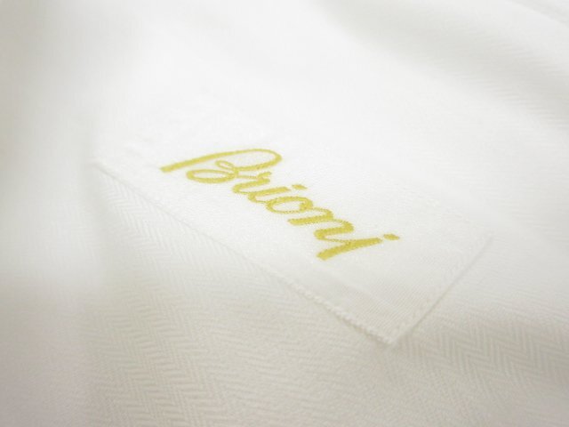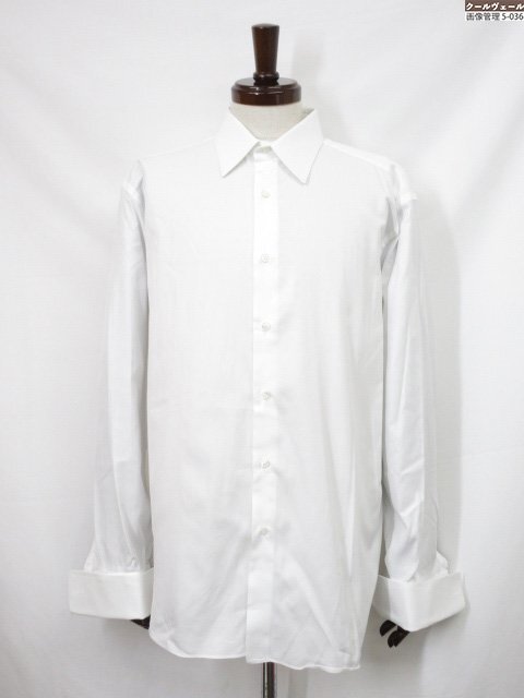 超美品【ブリオーニ Brioni】綿100% ヘリンボーン織柄 ダブルカフス 長袖シャツ (メンズ) size 44 ホワイト イタリア製 ◇38MK6234◇