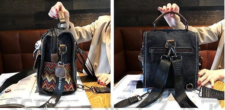 レトロエスニック牛革3斜め掛けデニムでワンショルダーバッグ